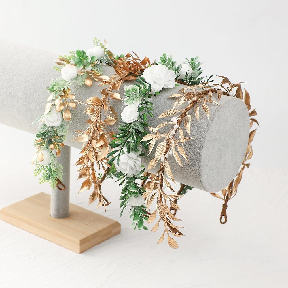 المادة الرئيسية: تاج الزهور هذا مصنوع من سلك ملفوف بالورق، مزيج من الزهور محاكاة البلاستيك الناعم، بساطة رائعة، قادر على خلق تصفيفة شعر مثالية على الفور
