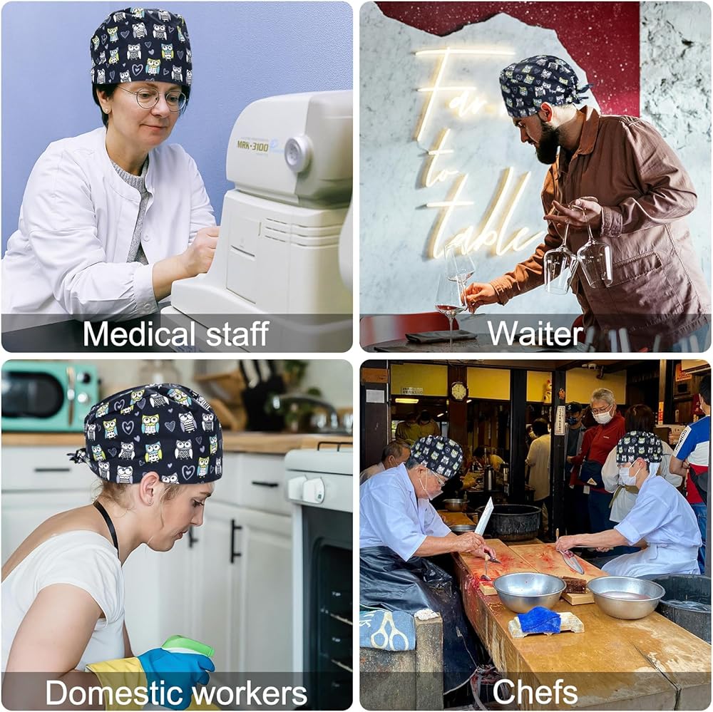 The owl scrub caps feature a built-in sweatband and sweat-absorbent cloth at the front, ensuring you stay dry and comfortable throughout the day, effectively absorbing sweat, and preventing it from dripping into your eyes and affecting your work.
