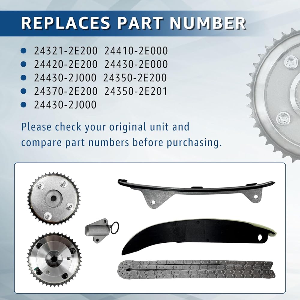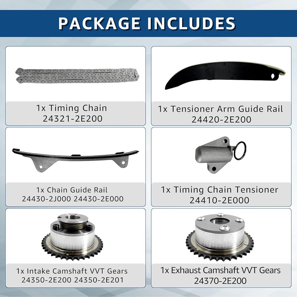 مجموعة سلسلة التوقيت وترس CVVT متوافق مع محرك 2014-2016 Hyundai Elantra GT 2.0 Tucson & Kia Forte Koup Soul L4 2.0L 24321-2E200 24350-2E201 24370-2E200