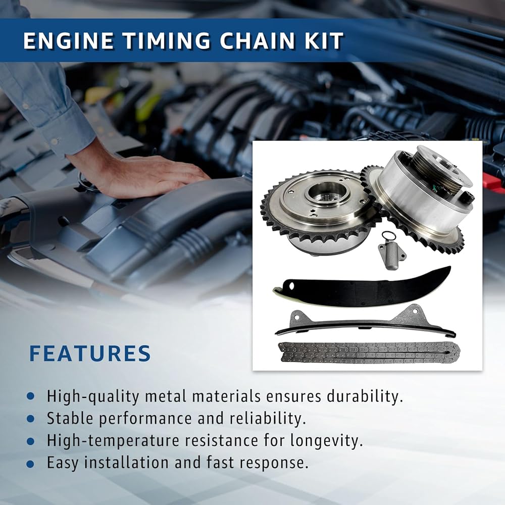 تتضمن العبوة مجموعة أدوات سلسلة توقيت المحرك مكونة من 6 قطع: 1x سلسلة توقيت، 1x شداد سلسلة التوقيت، 1x سكة توجيه ذراع الشد، 1x سكة توجيه السلسلة، 1x توقيت الصمام المتغير (VVT) ضرس (المدخل)، 1x توقيت الصمام المتغير ( VVT) ضرس (العادم)