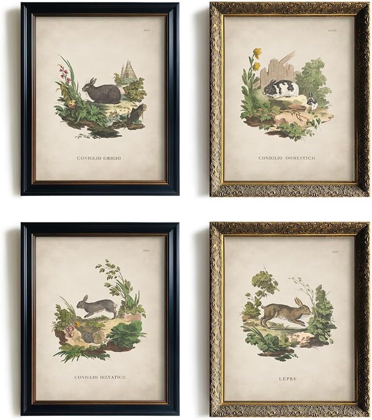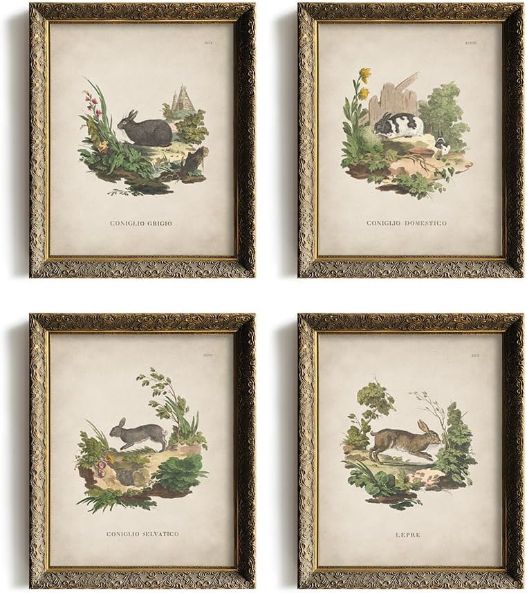 لوحة فنية جدارية على شكل أرنب عتيق - مجموعة طباعة ملصق أرنب عيد الفصح الربيعي - ديكور بيض عيد الفصح للمزرعة الحديثة لغرفة النوم وغرفة المعيشة - ديكور ريفي فرنسي ريفي - هدية حرفية للنساء