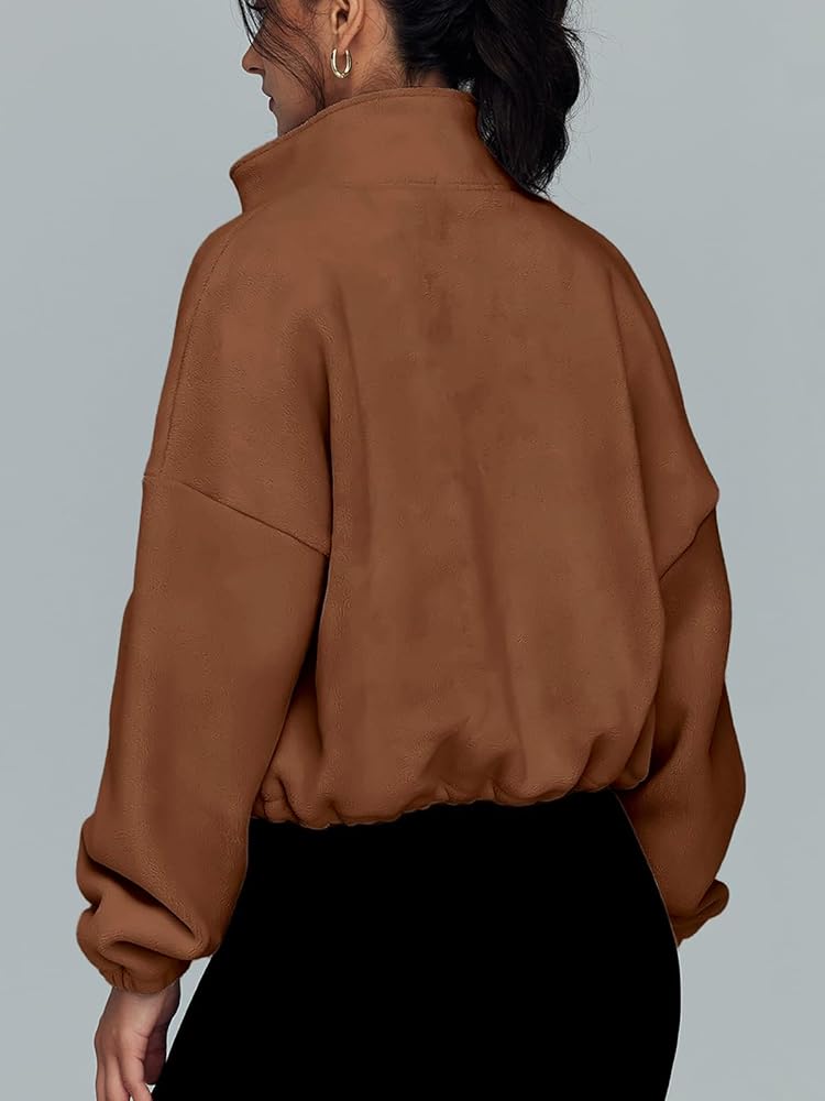 المزايا: كم طويل، طول قصير، مقاس كبير، خفيف الوزن، صوف دافئ، سترة خريفية، بلوزات خريفية للنساء 2023، معاطف قصيرة من الشيربا، سترة بسحاب، سترة شيربا للنساء، ياقة واقفة، لون ثابت، أساور مرنة