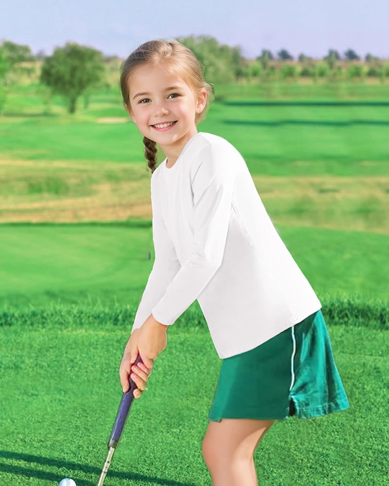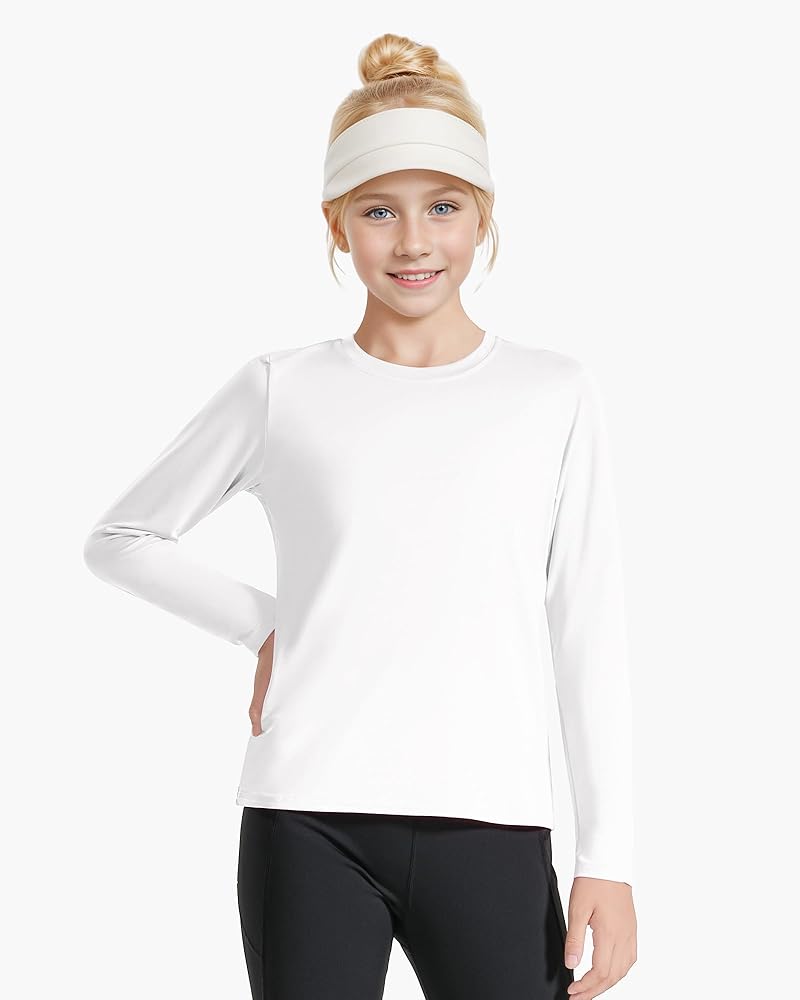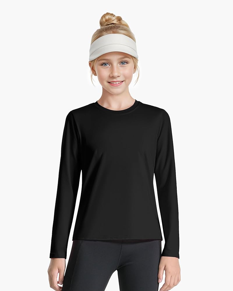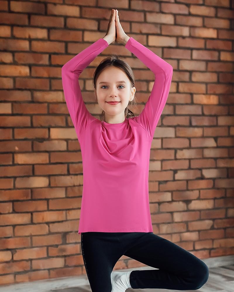 المواد: قمصان طويلة الأكمام للفتيات مصنوعة من نسيج ناعم ومسامي وسريع الجفاف يطرد العرق والرطوبة بعيدًا عن الجسم، مما يسمح لك بالتمدد بحرية أثناء ممارسة التمارين.