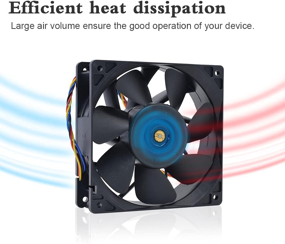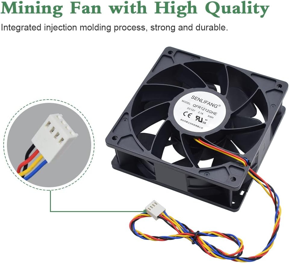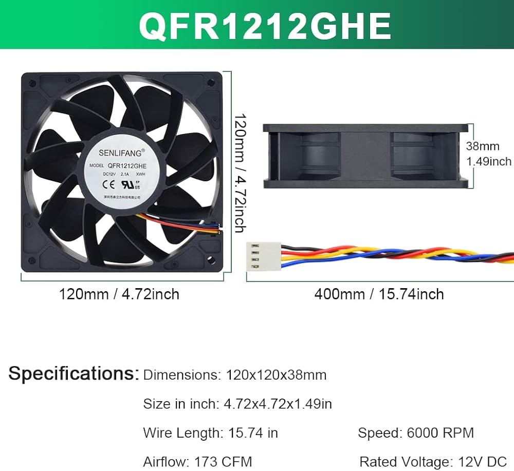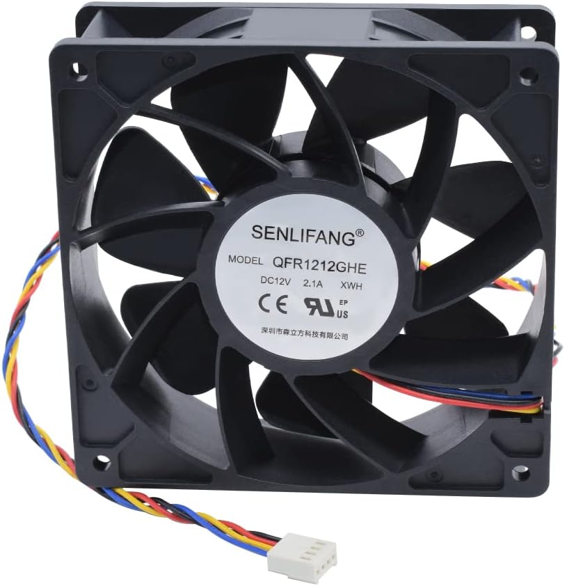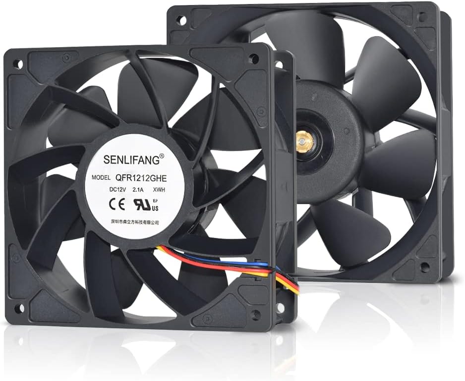 مروحة بديلة لـ: أفالون 6، أفالون 741، أنتي مينير S9 (S3 S4 S5 S7)، واتسمينر M3، Ebit E9 AntMiner D3 L3+ T9 S15 T15S17 T17 Misieren SHLF1212GHE-07 استبدال مروحة Cryptouniverse CPF-12V ¨C مربعة مروحة DC 12V 2.1A ، 120x120x38mm