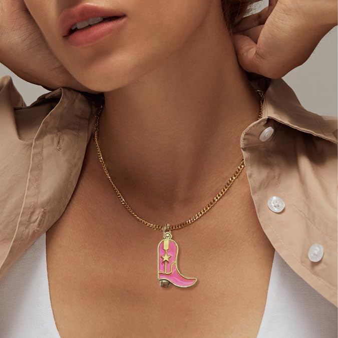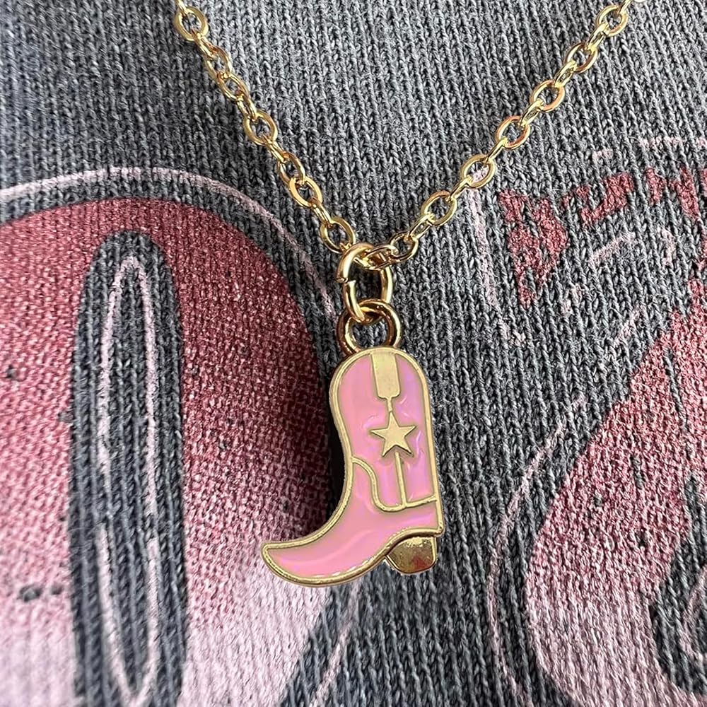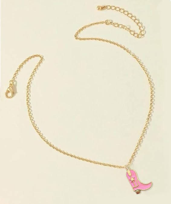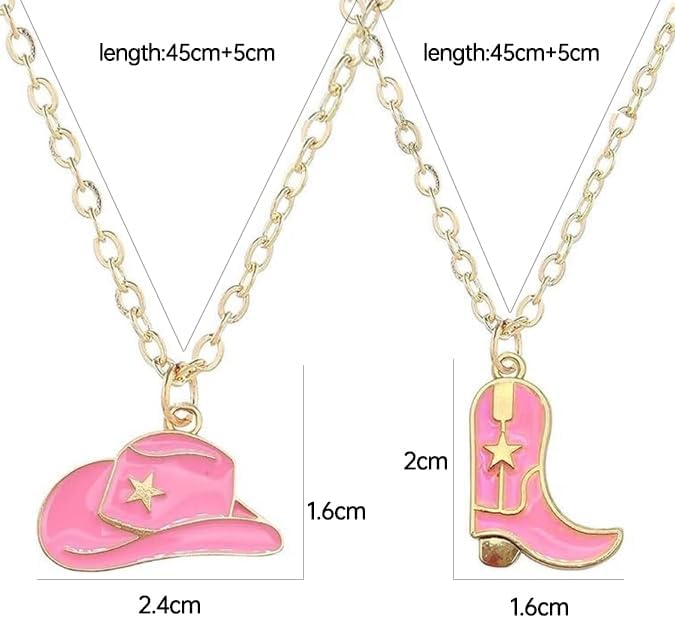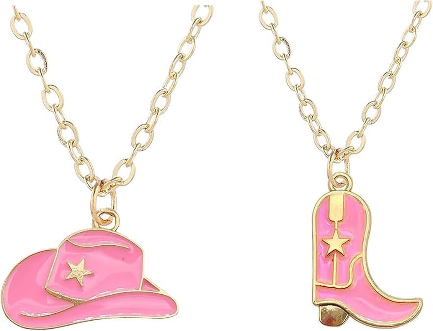 مجموعة مجوهرات راعية البقر: احتضن الغرب المتوحش مع قلادة راعية البقر الخاصة بنا. سوف تحصل على قطعة واحدة من قلادة حذاء رعاة البقر وقطعة واحدة من قلادة قلادة على شكل قبعة رعاة البقر. ارفع ملابسك مع قلادة حذاء ركوب الخيل النابضة بالحياة هذه، والتي تظهر شغفك بمجوهرات راعية البقر الغربية. تضيف قلادات الحذاء والقبعة لمسة من الأناقة إلى حبك لكل الأشياء الغربية.