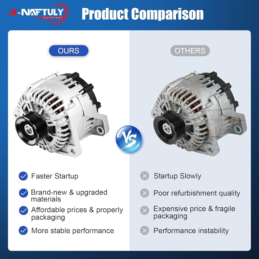 [مولد كهربائي جديد ومطور] مولد كهربائي عالي الإخراج مصنوع من سلك نحاسي نقي، ومعايرة الدوارات والأعضاء الساكنة، وطلاء عازل خارجي لمنع قصر الدائرة، وتبديد الحرارة بسهولة، وتقليل فقدان الطاقة، وضمان توليد الطاقة أكثر استقرارًا وأسرع، وحل المشكلة. الأصوات الغريبة، الضوء التحذيري على لوحة القيادة، البطارية الميتة وغيرها من الأعطال.