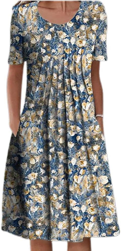 【المميزات】: مع طباعة زهور فريدة جدًا وتصميم على شكل حرف A، مشابه لنمط بوهو. يعد هذا الفستان بياقة دائرية وأكمام قصيرة وفستانًا واسعًا ومكشوفًا خيارًا مثاليًا للملابس الصيفية، فهو يجمع بين الموضة والكاجوال.