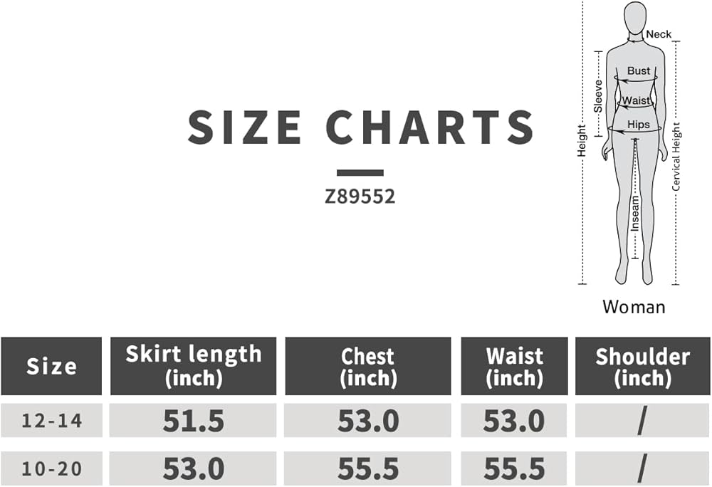 - خياران للمقاسات: النساء البالغات L 12-14 أو X-Large 18-20