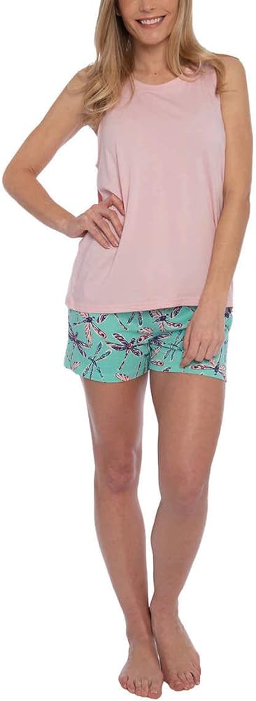 Features: Scoop neck tank with printed pants and shorts Spilt back hem on the tank Pants include drawstring and pockets Super soft cotton-rayon blend jersey Made in China Fabric Content: 70% Rayon from Bamboo / 30% Cotton Sizing: S-XXL Semi- Fitted Back Body Length: S=25” / M=25 ¾” / L=26 ½” / XL=27 ¼” / XXL=28” Inseam Pant: S=31” | M=31” | L=31”| XL=31” | XXL=31” Inseam Short: S= 3 ½” | M=3 ½” | L=3 ½” | XL=3 ½” | XXL=3 ½” Model is 5'9" and wearing size Small Color and sizing subject to availability Care Instructions Turn garment inside out Machine wash cold Gentle cycle with like colors Only non-chlorine bleach if needed Tumble dry low Do not iron if decorated