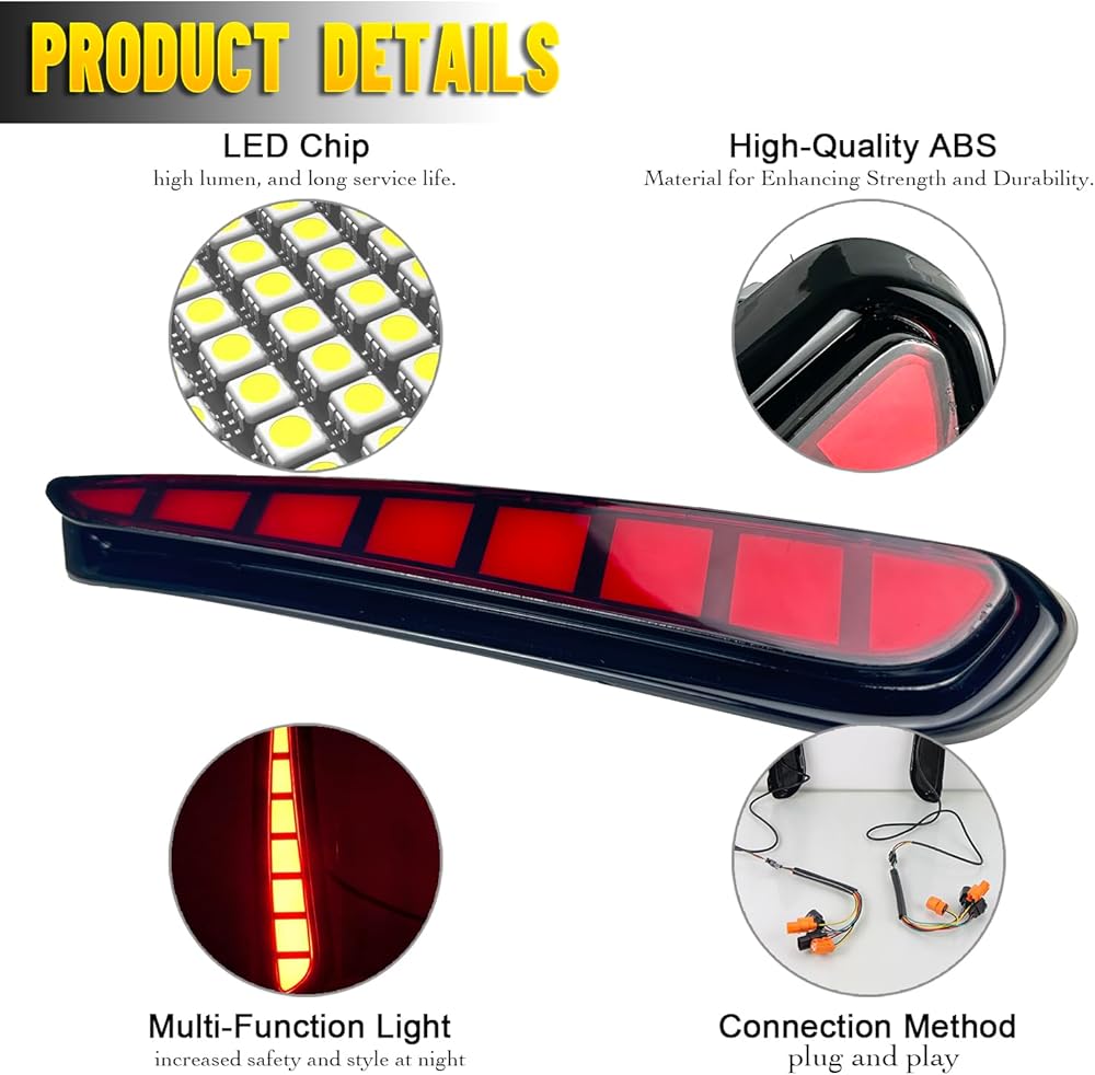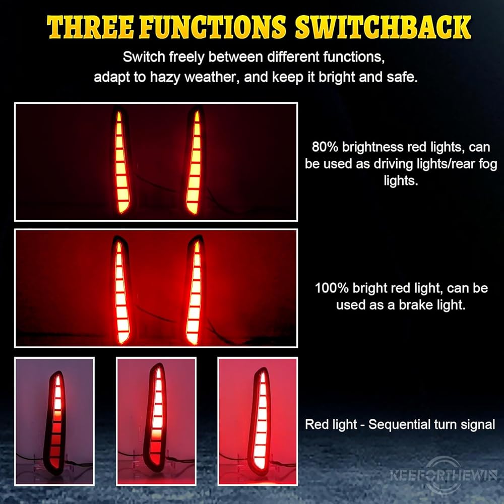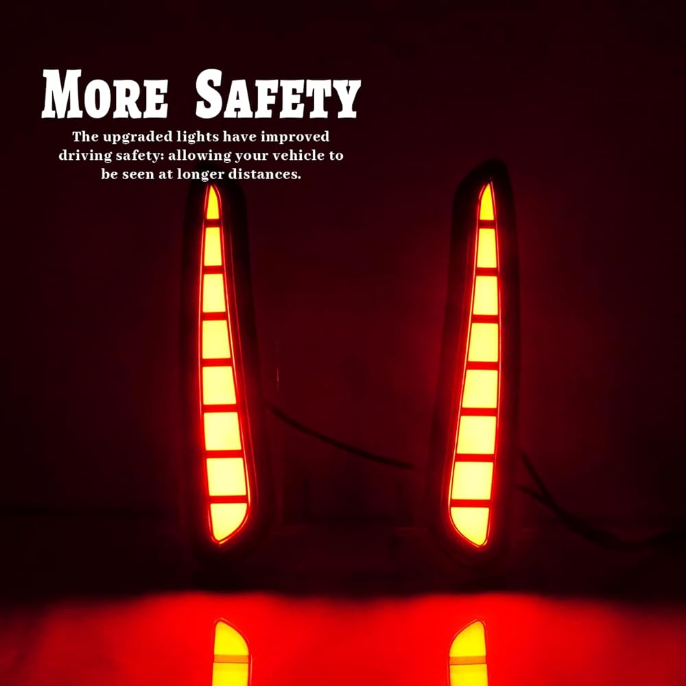 ► تصميم متعدد الوظائف: زوج من مصابيح الفرامل LED ذات اللون الأحمر طراز JDM لتحل محل العاكس الأحمر الموجود في المخزون. يعمل كمصابيح خلفية وأضواء فرامل ومصابيح ضباب خلفية لتحسين السلامة.