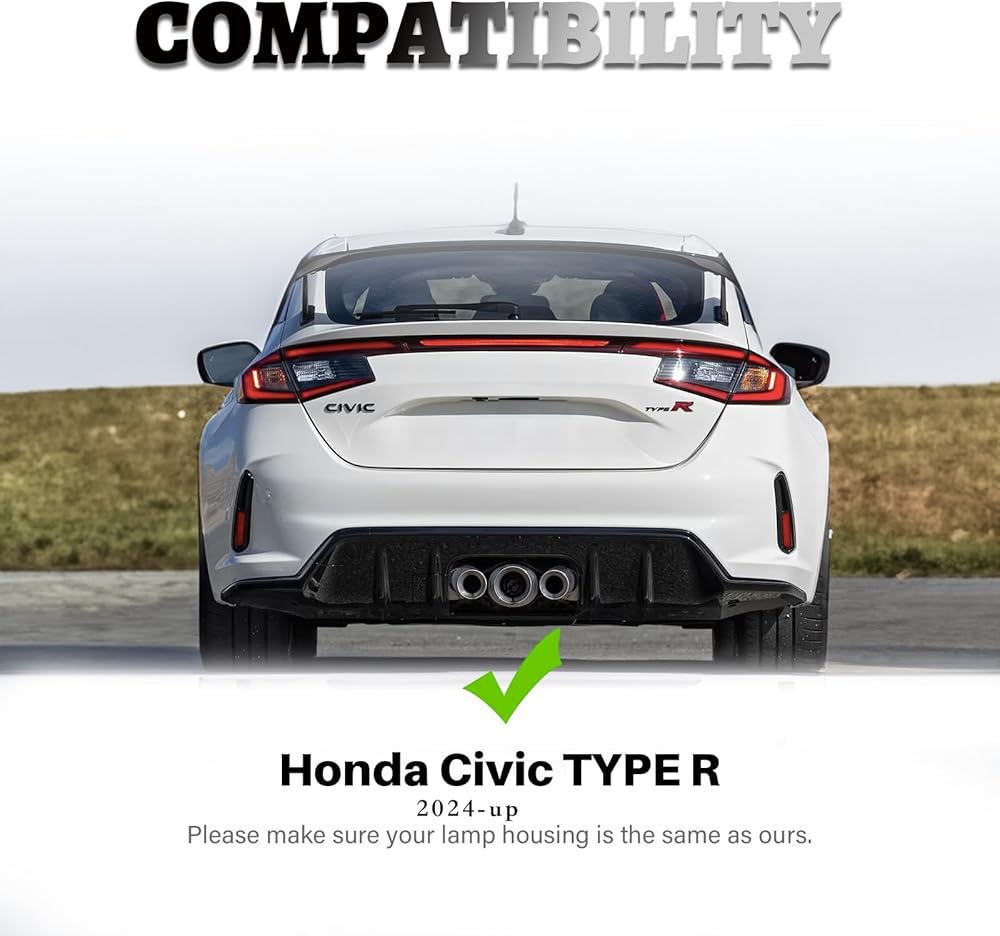 ►ترقية الإضاءة الخلفية: عزز رؤية وأناقة طراز Civic Type R لعام 2024-2025 باستخدام مصابيح المصد الخلفي LED هذه.