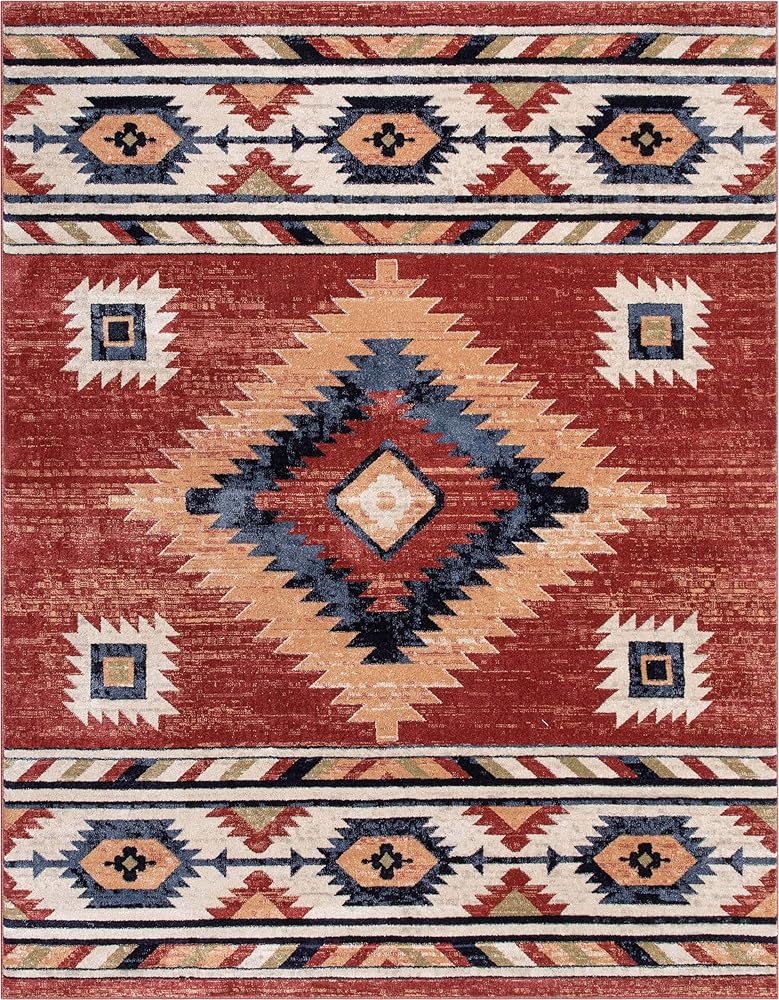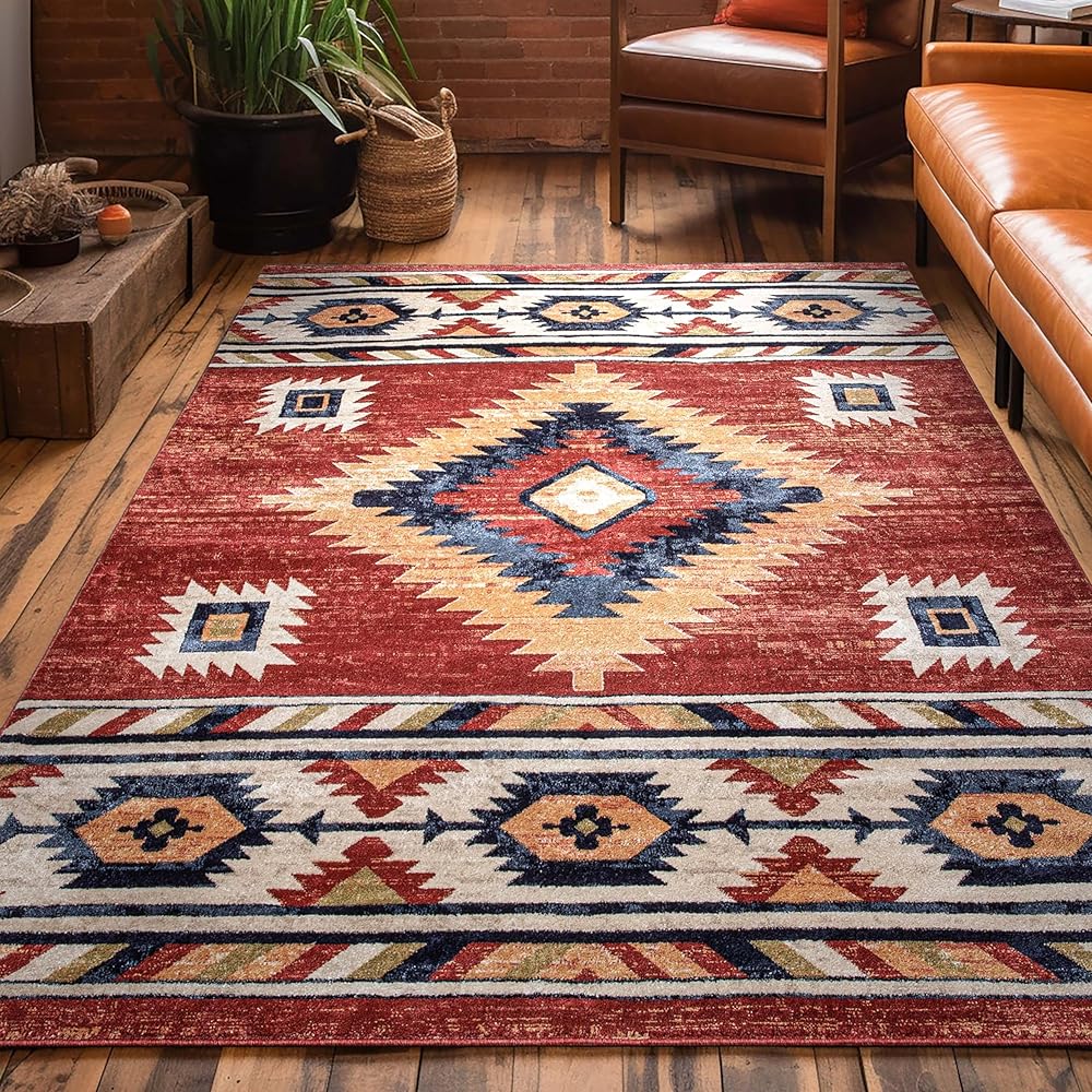 This classic Southwestern pattern is woven in modern, contemporary colors and features a distressed-style pattern for a vintage look. The soft 0.4" pile is stain resistant, easy to clean, and doesn't shed or fade over time. A jute backing is safe for wood floors and all four sides of the rug are serged for improved durability.