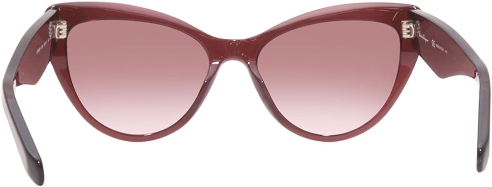 Salvatore Ferragamo Sunglasses. Series number: SF930S. Color code: 606. Shape: Butterfly. Lens Width: 56 mm. Lens Bridge: 17 mm. Arm Length: 145 mm. 100% UV protection. Non-Polarized. Frame Material: Plastic. Frame Color: Wine. Lenses Type: Burgundy Gradient. Rim Style: Full-Rim. UPC/EAN code: 886895387705. Salvatore Ferragamo Burgundy Gradient Butterfly Ladies Sunglasses SF930S 606 56.