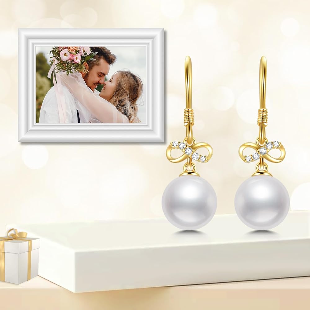 • 【Design】 Dianty diamond infinity pearl earrings with polished fish hooks, dangling slightly on your face as they dance, makes you look more pretty.