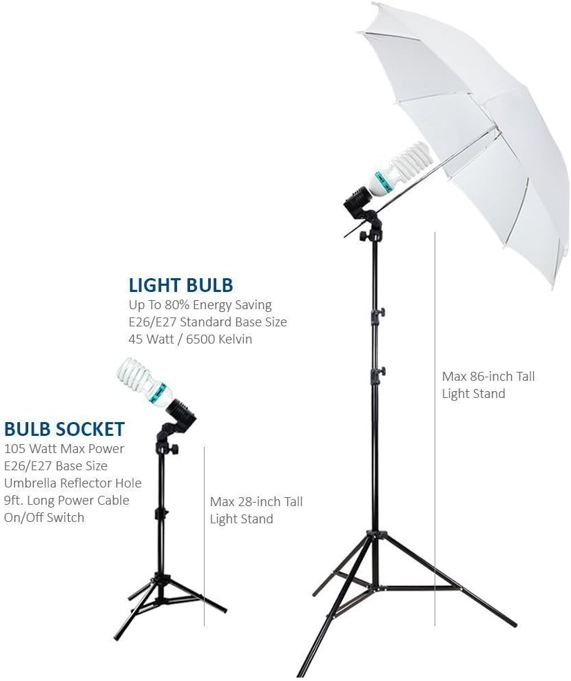 [3 x] Single Head Photo Bulb Socket with Umbrella Holder