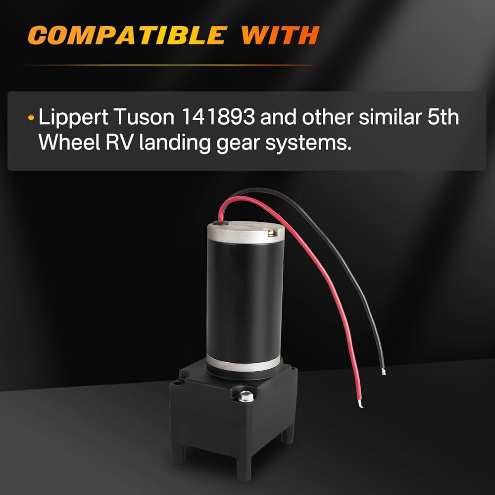 محرك LC141893 عالي السرعة للعجلة الخامسة RV محرك عالي التحمل 12 فولت تيار مستمر 6000 رطل قدرة الرفع متوافقة مع Lippert Tuson 141893 استبدل LC196308 196308 محرك تروس الهبوط للعجلة الخامسة