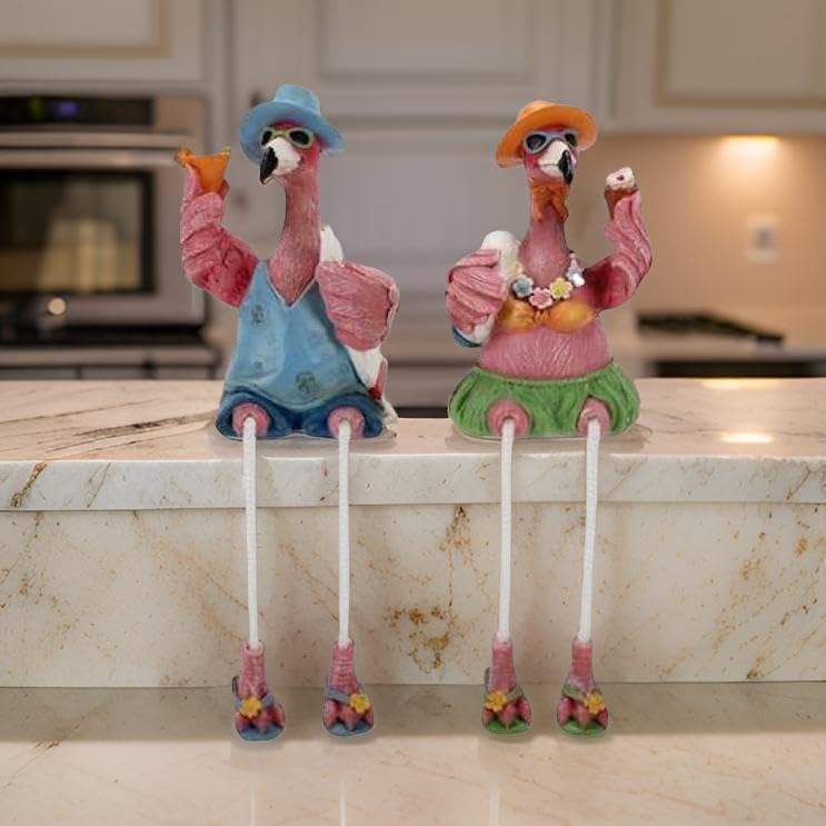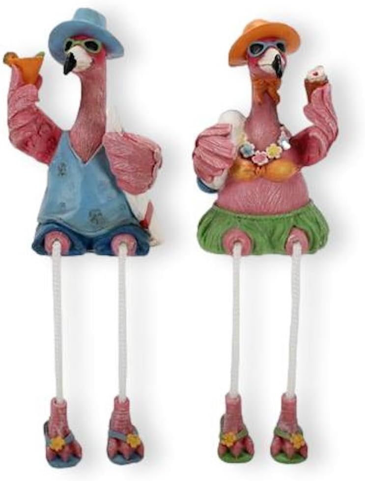 مجموعة Bridge Collection مقاس 8 بوصات فلامنغو للزوجين - مجموعة من قطعتين - ديكور طيور النحام الصيفي - جليسات رف ممتعة - ديكور فلامنغو وردي - هدية فلامنغو للأصدقاء - جليسات رف مبتكرة بأرجل متدلية