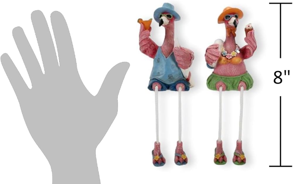 • Size: Measuring 2.25 inches long, 2.25 inches wide, and 8 inches high, these flamingo couple sitters are the perfect size to make a statement without overwhelming your decor