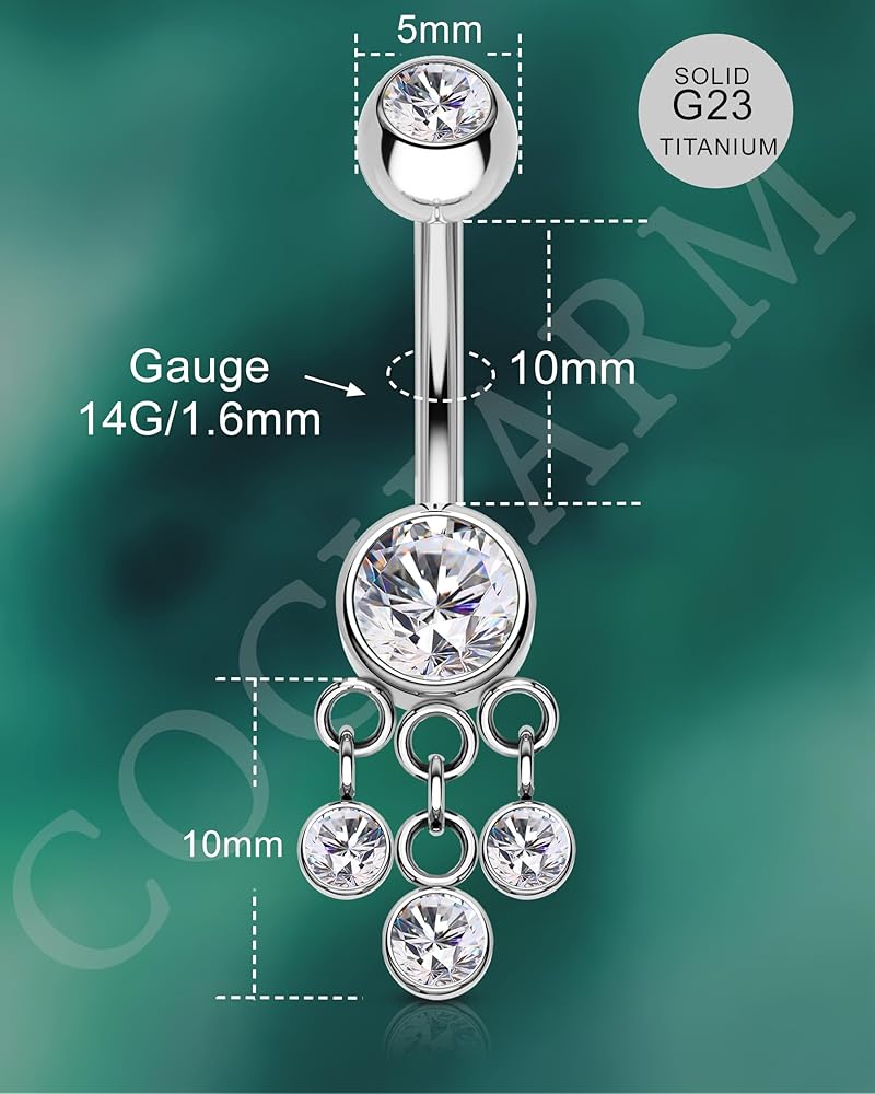- [عبوة قيمة]: 1 قطعة حلقات زر البطن من التيتانيوم الصلب G23. معبأة بواسطة عبوة تحمل العلامة التجارية Cocharm.