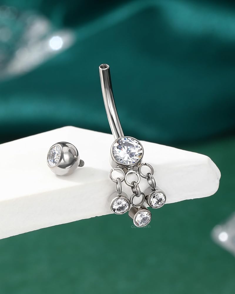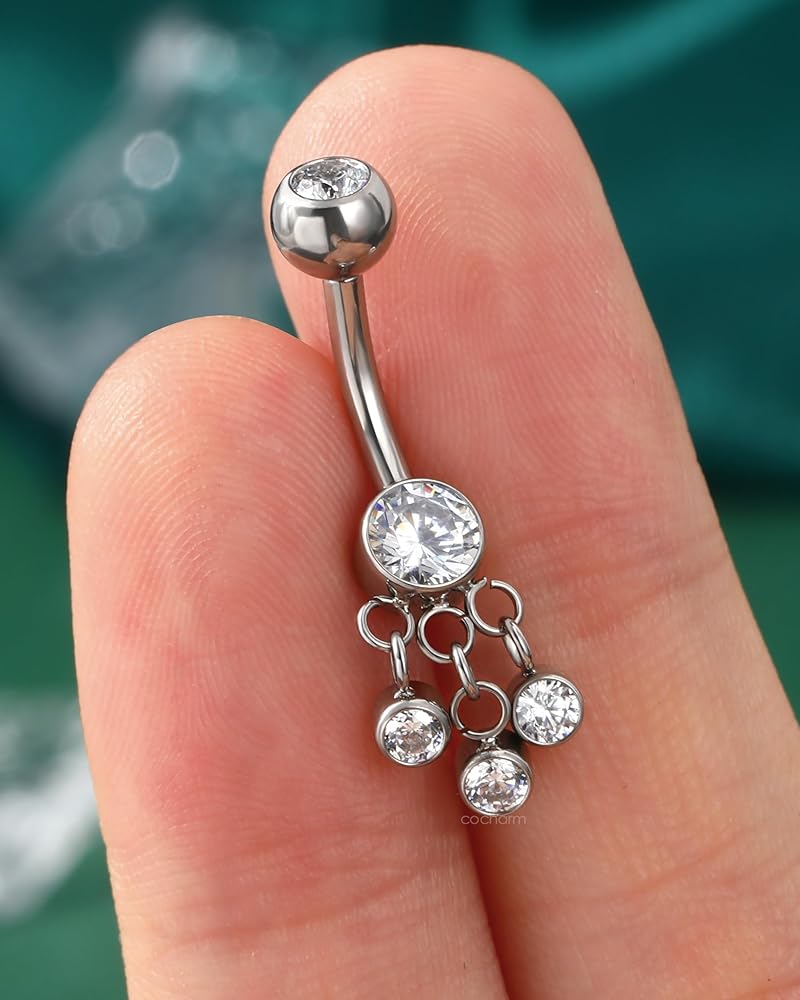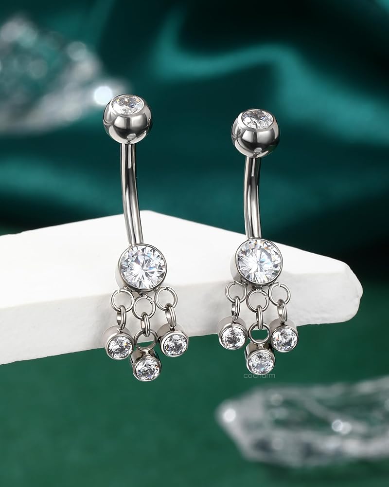 COCHARM الحد الأدنى G23 الصلبة التيتانيوم حلقات زر البطن استرخى 14G حلقات البطن السرة للنساء التيتانيوم البطن السرة ثقب المجوهرات المتدلية