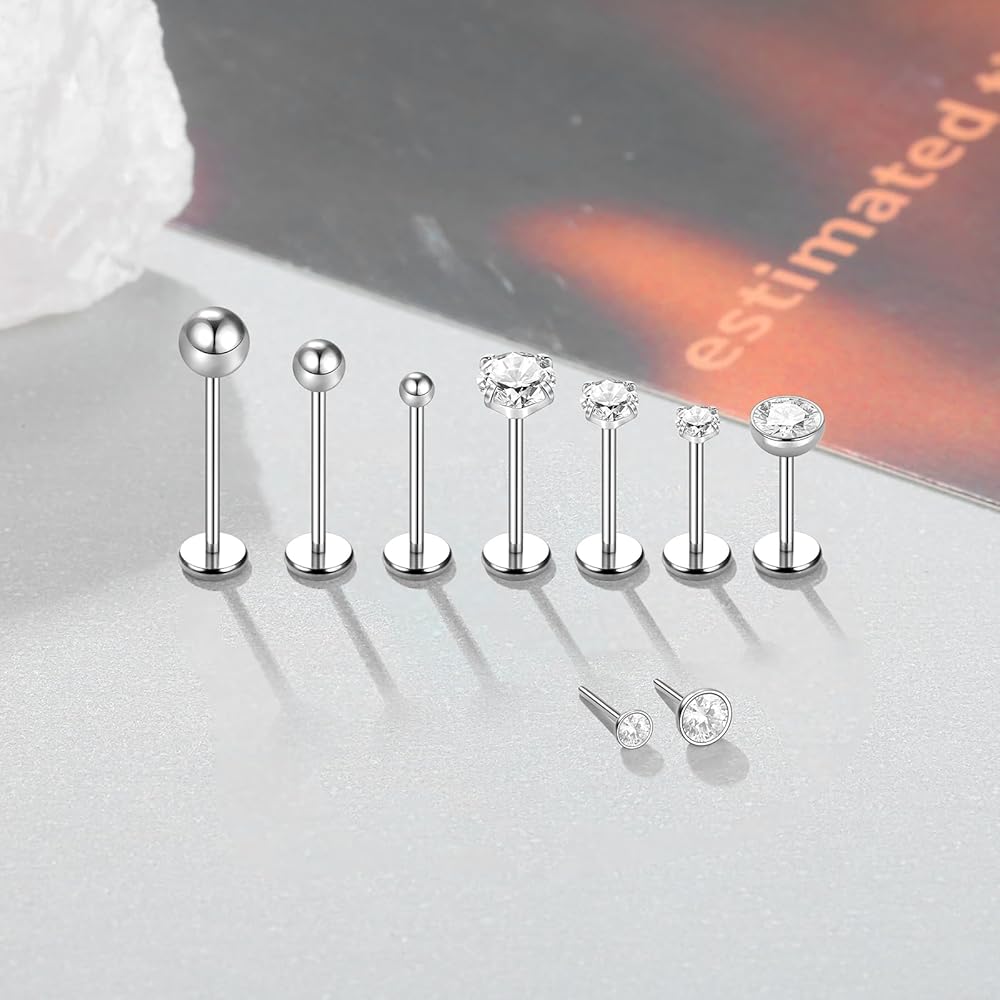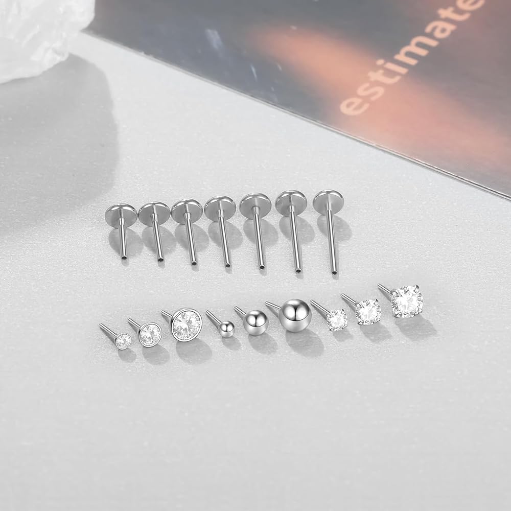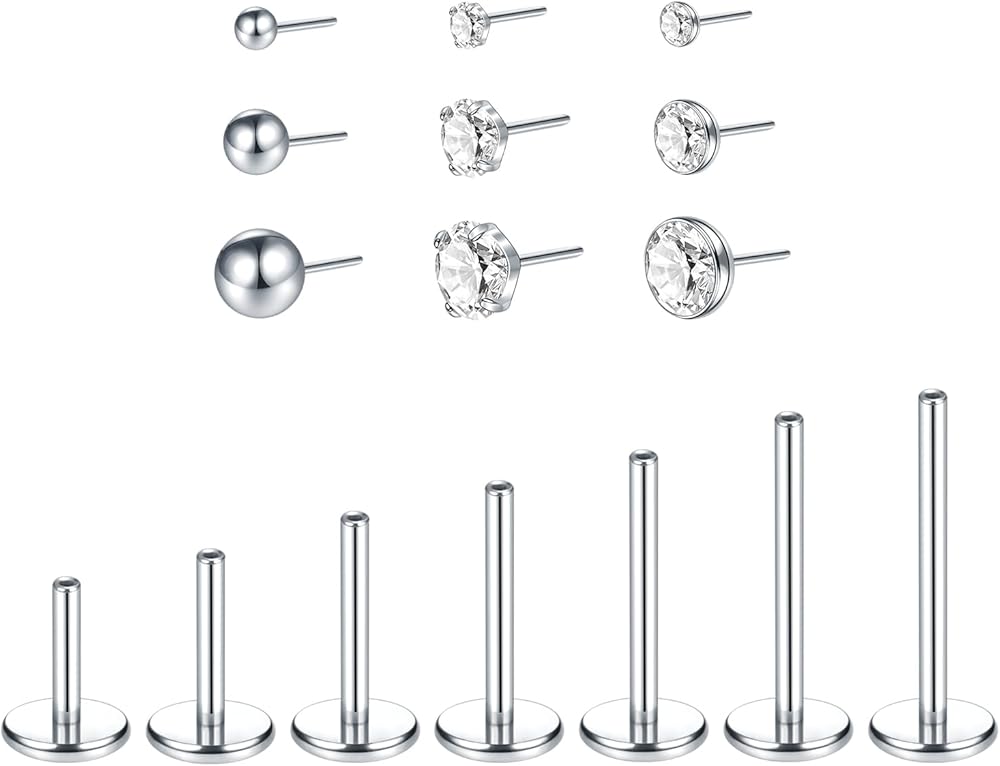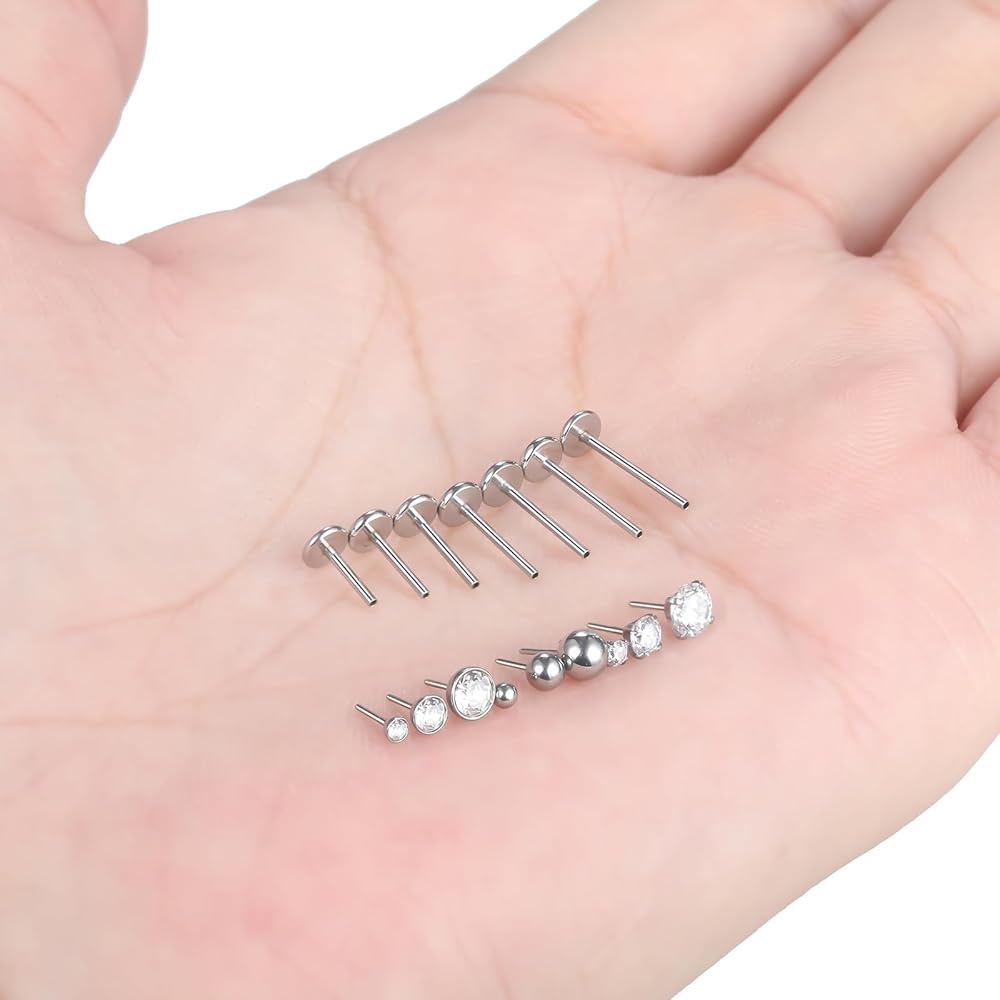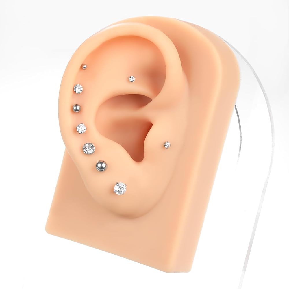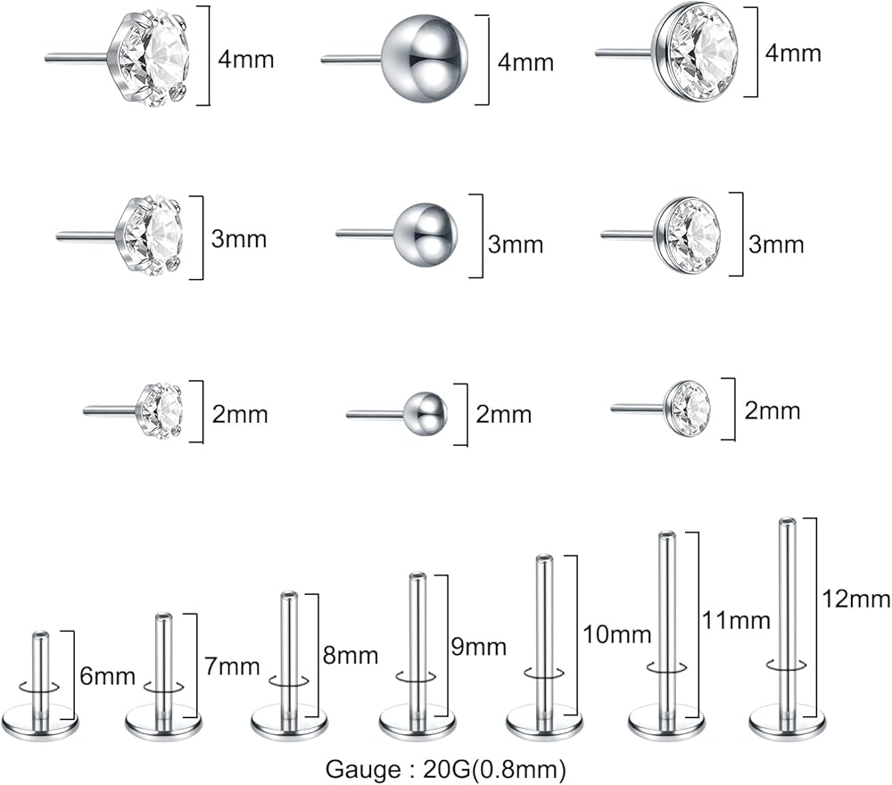 3 أنماط من الأطراف العلوية - كرة مستديرة من الفولاذ الجراحي، تشيكوسلوفاكيا وكريستال بأبعاد 2 مم، 3 مم، 4 مم. 18 جاج لثقب الأذن والشفة والأنف.