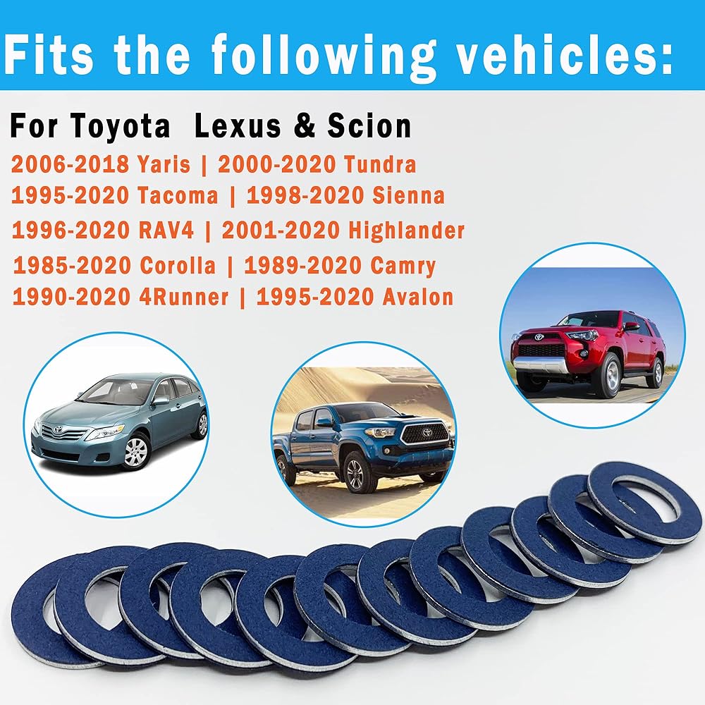 12 حزمة من حشية سدادة تصريف الزيت تويوتا متوافقة مع تويوتا تاكوما كامري تندرا 4 رانر كورولا أفالون سيون لكزس حشية سدادة تصريف الزيت 90430-12031 ألومنيوم