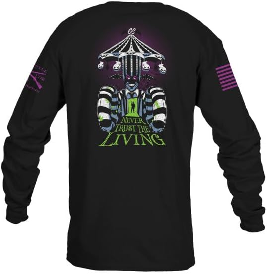 WE'VE GOT YOU COVERED - ALL GRUNT STYLE SHIRTS ARE COVERED FOR LIFE!Grunt Style remembers a time when people took serious pride in their work. "American Made" meant something special. You deserve to be squared away. When you buy Grunt Style, you're buying into a family.We want the American Flag on your sleeve to look fresh. We know pride in work because we're the veterans and patriots who make Grunt Style shirts every day for you!YOUR GRUNT STYLE SHIRTS ARE COVERED FOR LIFE FROM: Tears Holes Loose ThreadsStains from Defending the American Flag We've Got You CoveredGRUNT STYLE MEN'S SHIRTS ARE CRAFTED WITH THE FOLLOWING DETAILS: Ultra-Comfortable and Soft for All-Day Wear Tagless, Itch-Free Design Ribbed Collar that Won't Lose its Shape Machine Wash Cold Tumble Dry Low Proudly Printed in Carol Stream, IL.OUR MISSION, OUR QUALITY, OUR ATTITUDE:What you wear is more than just a necessity, it's about attitude! We have taken the heroic American spirit and instilled it in everything we do. You do not have to be a veteran to wear Grunt Style, but you do have to love freedom. We provide more just than apparel, we bolster a lifestyle.It's Show Time and this Never Trust The Living T-Shirt is perfect for those who embrace the strange and unusual! This shirt is sure to spook and excite, just don't say his name three times! This spooky design is sure to get noticed and stand out this spooky season.