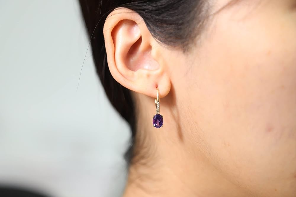 ADD SOME GLAMOUR TO YOUR OUTFIT: Give your formal wear an elegant upgrade when you slip on this dazzling Earring encrusted with a beautiful 14K Yellow Gold oval-cut Amethyst and diamonds earring.