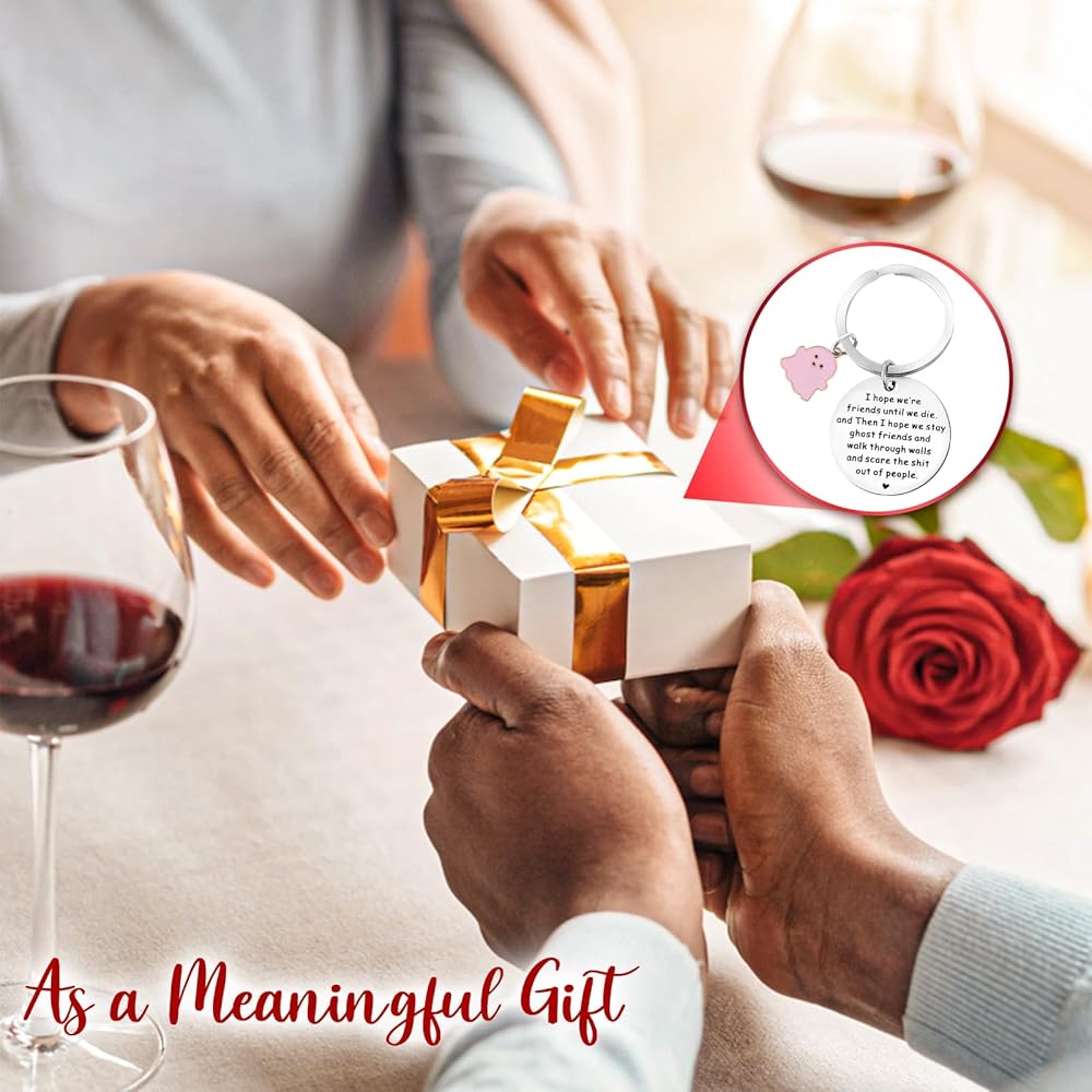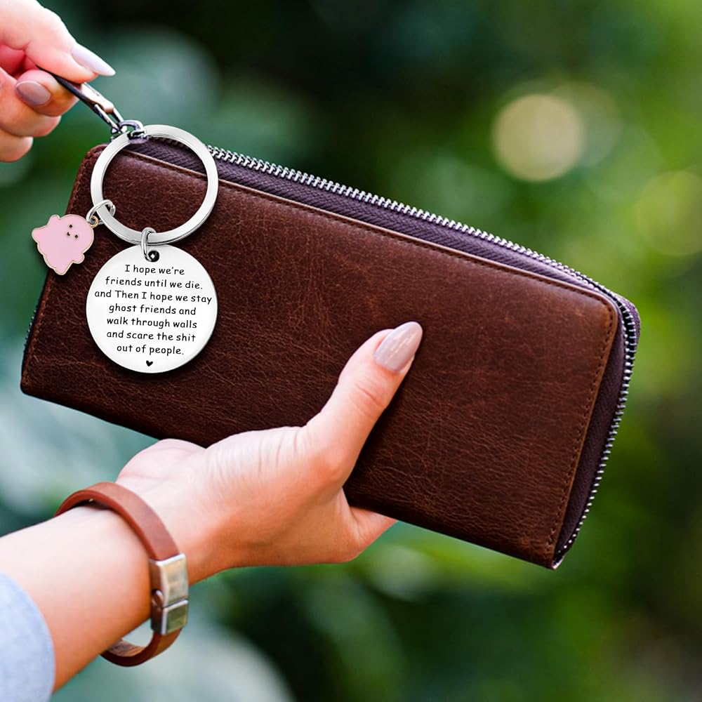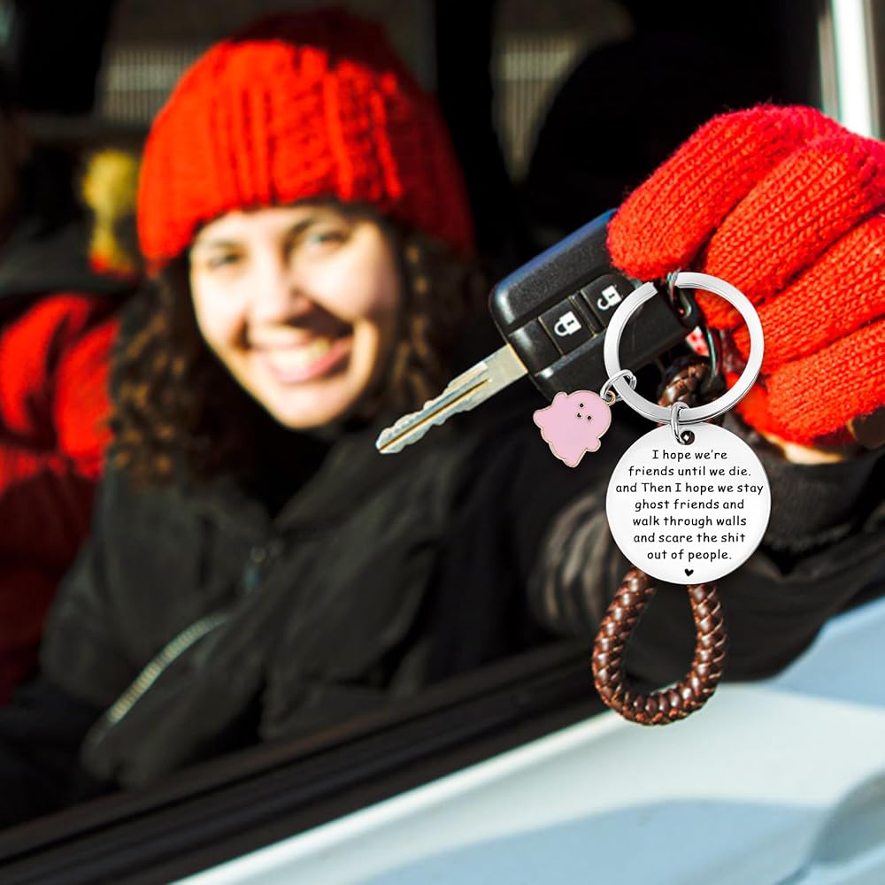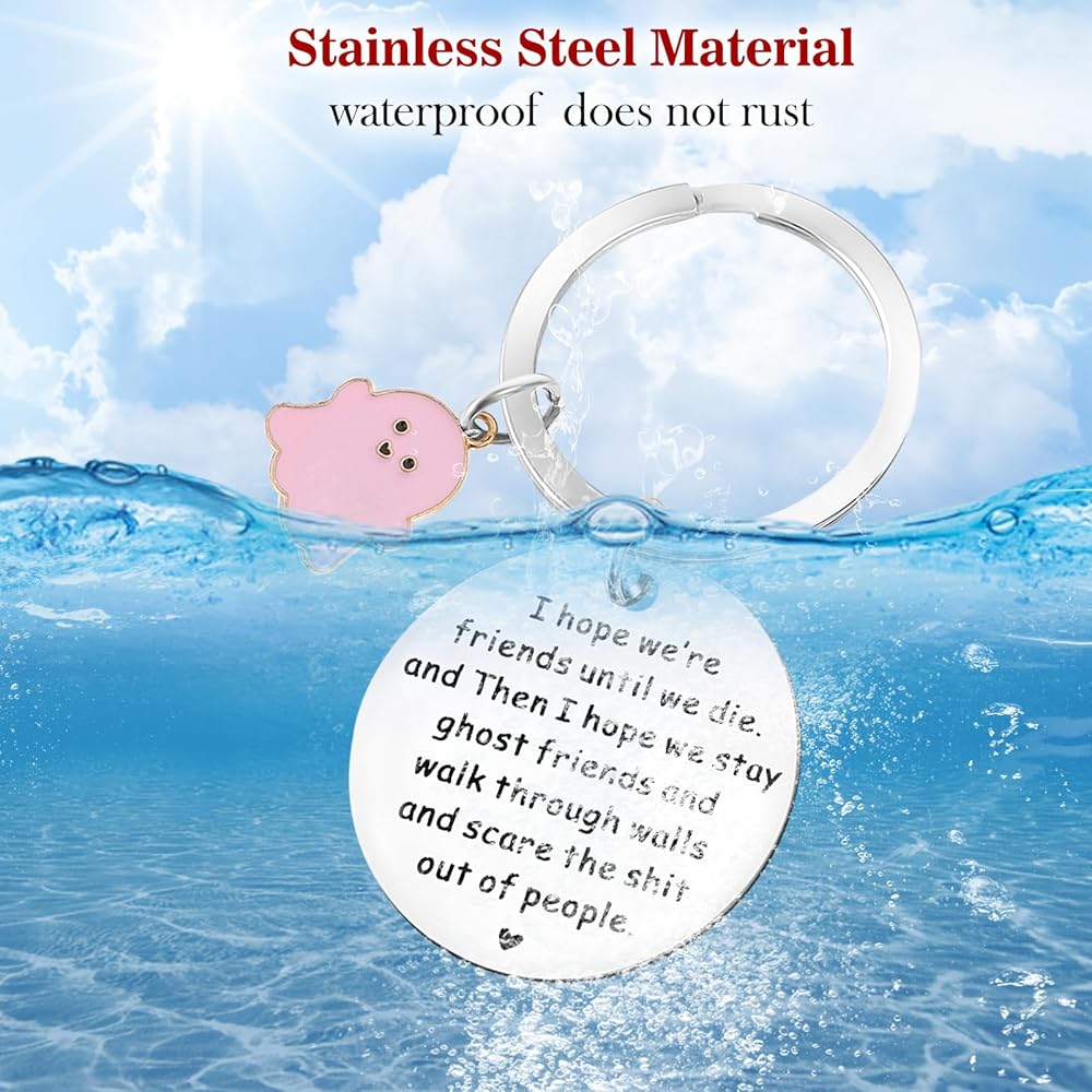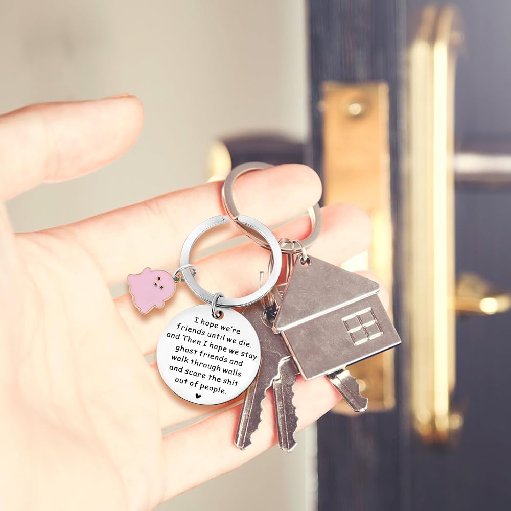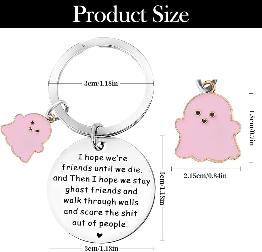 This funny ghost theme keychain is full of innocence and loveliness, just like your pure and unchanging friendship, with special meaning words; expressing the most sincere friendship between friends, it can be used to thank you for your best companionship and love