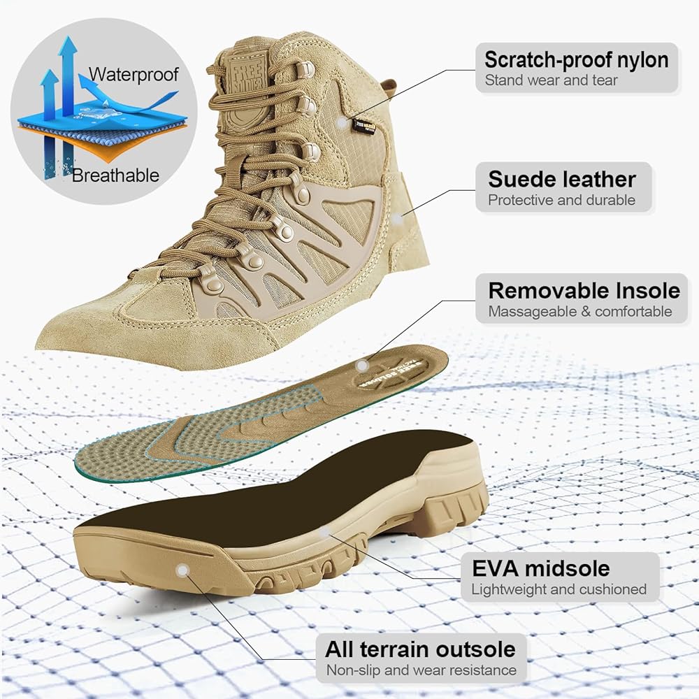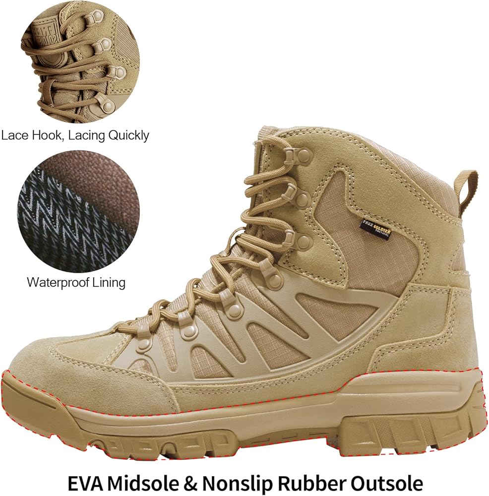 مناسبات متعددة: سواء كنت تبحث عن أحذية المشي لمسافات طويلة أو أحذية تكتيكية، يمكن استخدام أحذية المشي لمسافات طويلة المقاومة للماء للرجال من Free SOLDIER في إنفاذ القانون، والأمن، والرياضة الخارجية، والدوريات، والنشر، والمهام، وأحذية USMC، والصحراء، والتخييم، والتسلق، وركوب الدراجات، صيد الأسماك والغابة والجري وتسلق الجبال والسفر وما إلى ذلك