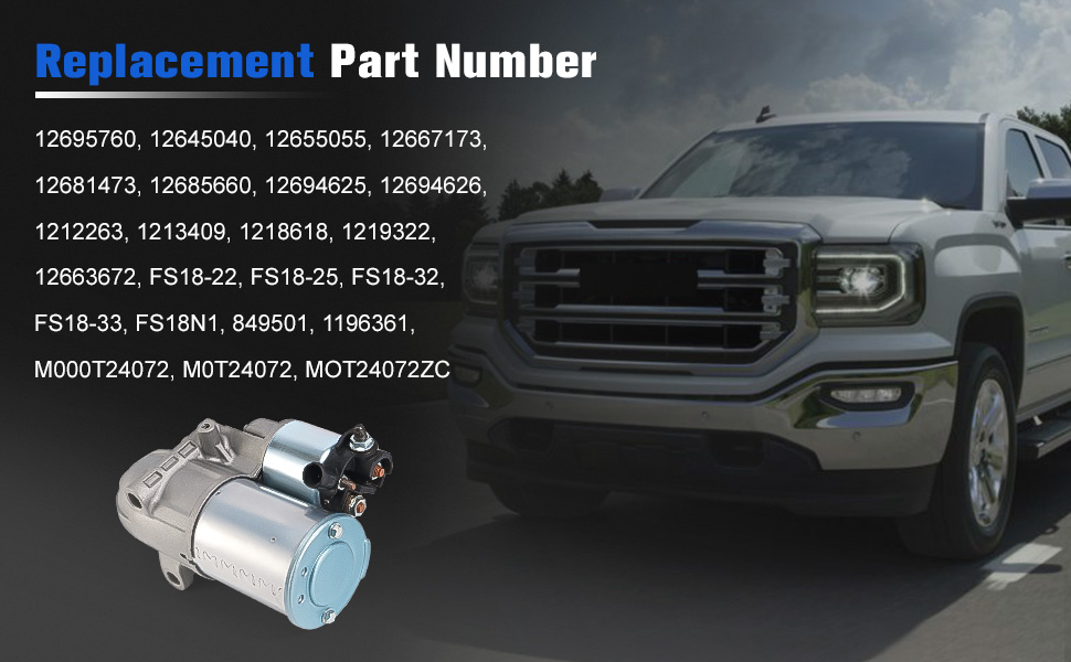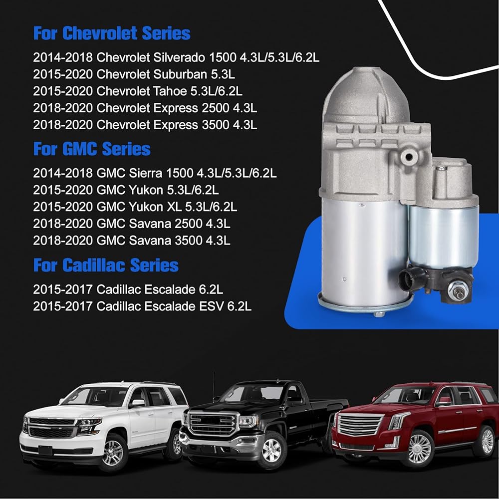 • 【متوافق مع سلسلة شيفروليه】محرك بداية يناسب 2014-2018 شيفروليه سيلفرادو 1500 4.3L/5.3L/6.2L، 2015-2020 شيفروليه سوبربان 5.3L، 2015-2020 شيفروليه تاهو 5.3L/6.2L، 2018-2020 شيفروليه اكسبريس 2500 4.3 لتر، 2018-2020 شيفروليه اكسبريس 3500 4.3 لتر.