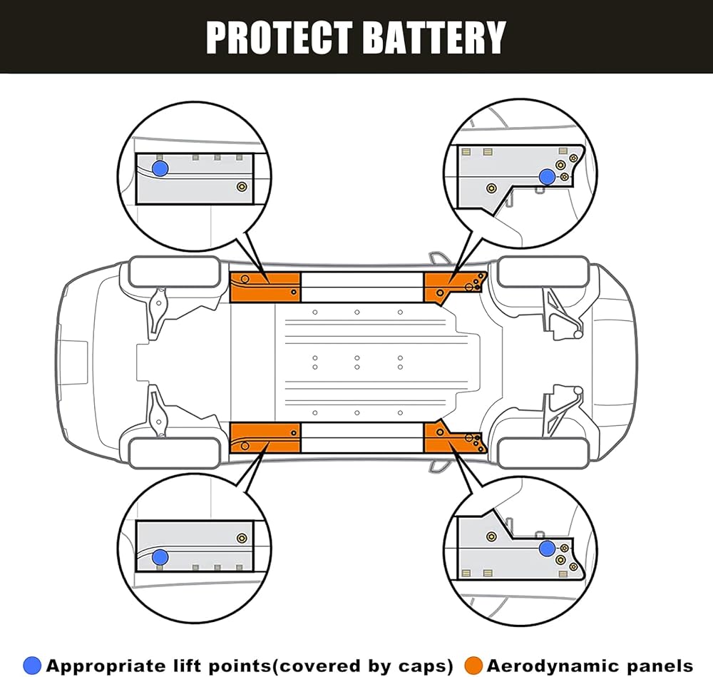 • [التوافق]: متوافق مع ريفيان R1T R1S. تم تصميم الرافعة لرفع الريفيان بأمان وبشكل صحيح. قم بحماية الهيكل والبطارية واللوحة الديناميكية الهوائية من التلف الناتج عن رفع المركبات بشكل غير صحيح.