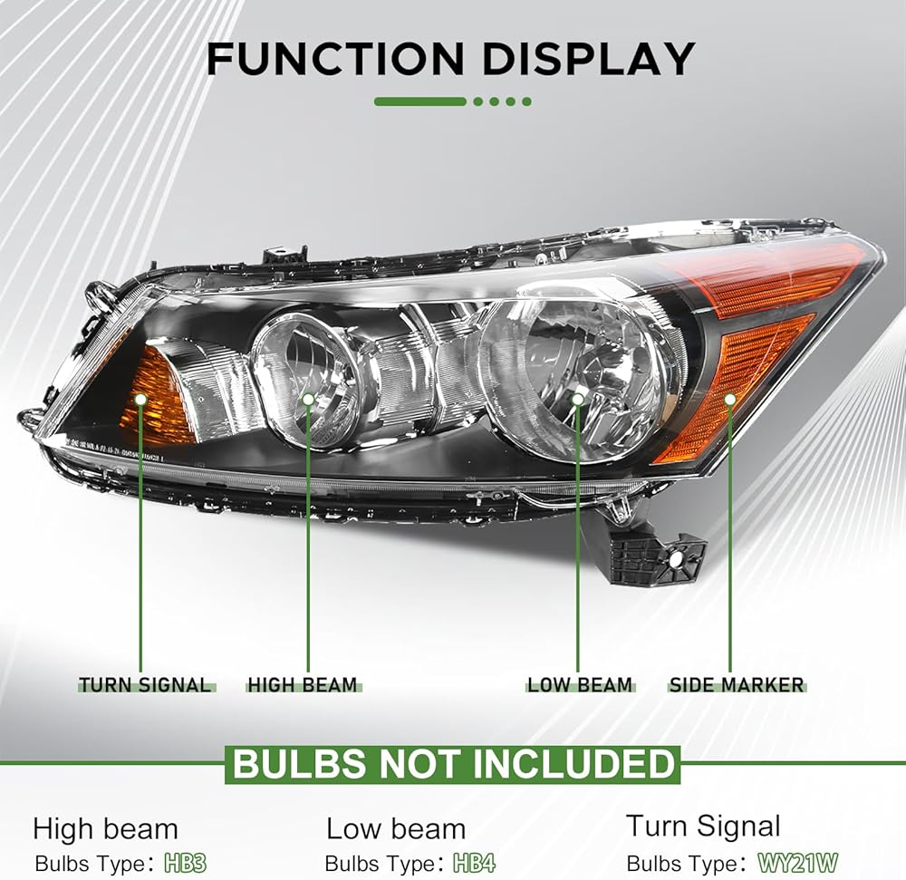 • [ملاءمة السيارة] مجموعة المصابيح الأمامية الهالوجين متوافقة مع Accord Sedan 2008 2009 2010 2011 2012.