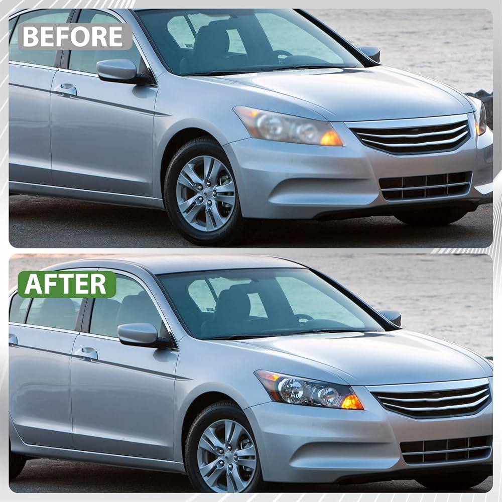 مصابيح هالوجين أمامية متوافقة مع سيارة أكورد سيدان 2008-2012 بديلة مباشرة للمصابيح الأمامية السوداء مجموعة عاكس كهرماني (جانب السائق والراكب)