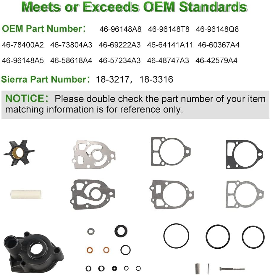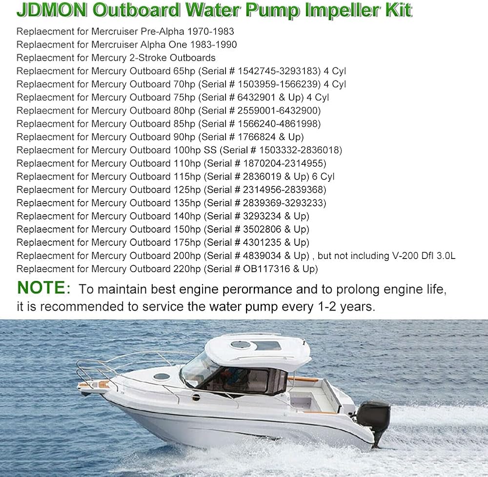 【الإعداد】استبدال JDMON لمجموعة دفاعة مضخة المياه Mercruiser Pre-Alpha 1970-1983، بديل لـ Mercruiser Alpha One 1983-1990، بديل للوحات الخارجية ذات الشوطين من Mercury 65hp، 70hp، 75hp، 80hp، 90hp، 100hp، 110hp، 115hp، 125hp، 135hp، 140hp، 150hp، 175hp، 200hp. ملاحظة: يرجى التحقق بشكل صحيح من السنة/الطراز/الطراز قبل الشراء