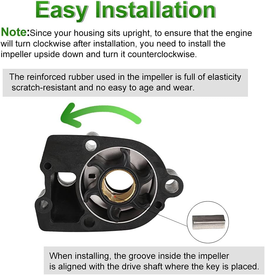 【الميزات: تقوم المكره بضخ الماء البارد إلى محرك القارب الخاص بك لتبريده أثناء الاستخدام. تعتبر دافعة مضخة الماء مهمة جدًا لمحركك الخارجي. يوصى بصيانة مضخة المياه كل 1-2 سنوات. يمكن أن تساعدك على توفير الوقت