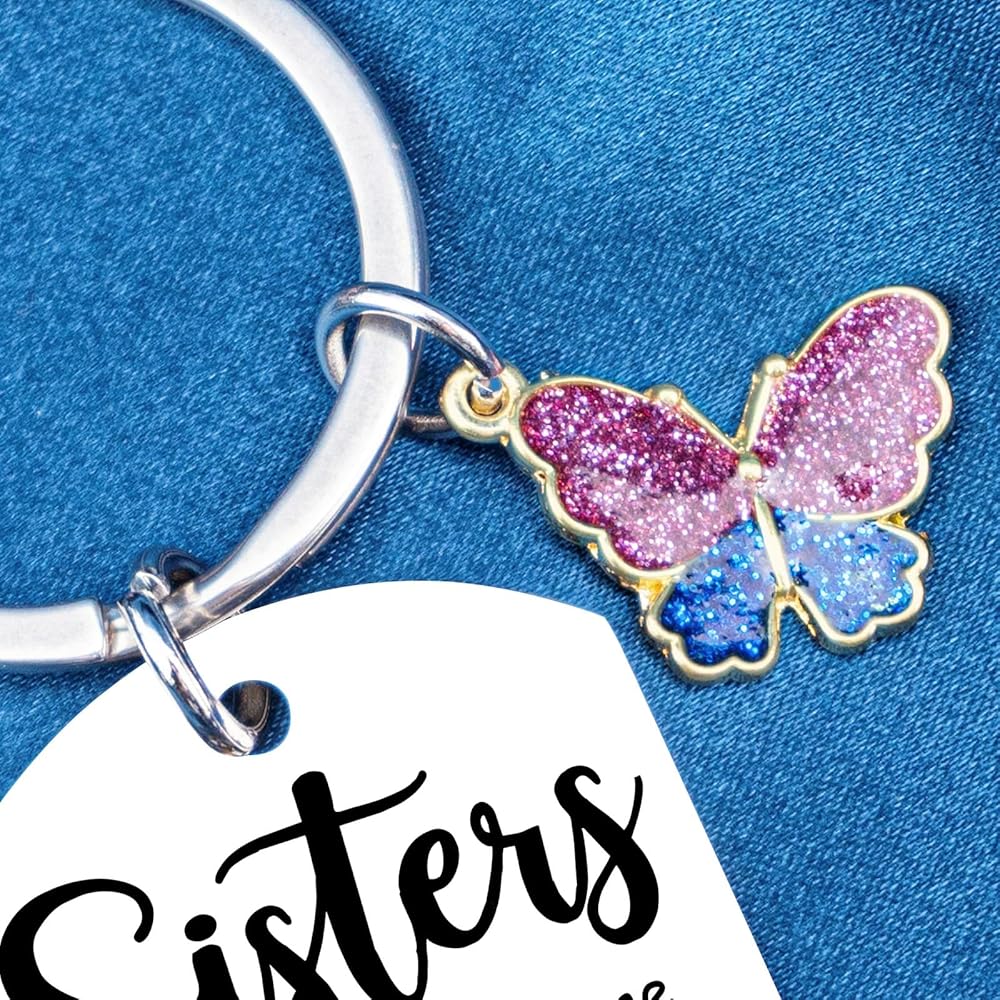• ʚɞ Thanksgiving Gifts for Sister, birthday gifts for sisters adult. Beautiful designed sisters keychain. A long distance relationship keychain provides floral text and exquisite arrangement, with a shining butterfly pendant makes a nice idea present for the girl you like!