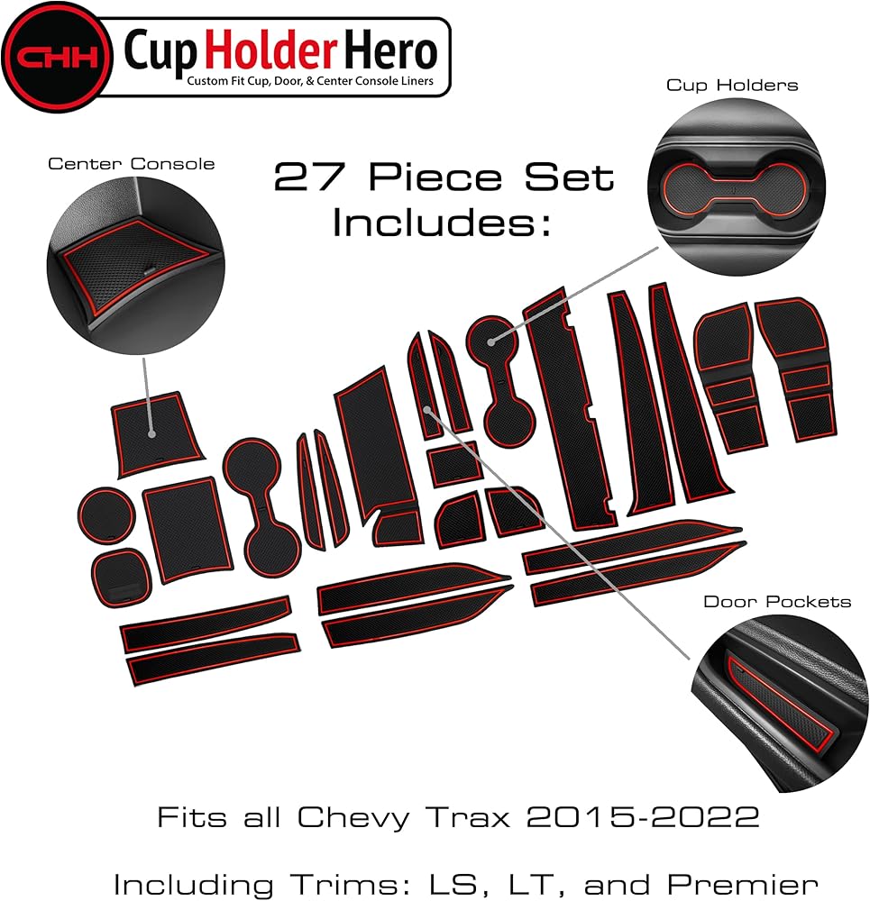✅أفضل الهدايا للرجال الذين لديهم كل شيء - تعتبر الإكسسوارات الداخلية للسيارة CupHolderHero أفكار هدايا رائعة للرجال والنساء الذين يستمتعون بإحساس السيارة النظيفة ويحبون المظهر المخصص المفصل. يدعم تعديل تشيفي تراكس. لا يمكنك أن تخطئ! مع خيارات الألوان المتنوعة لدينا، نحن متأكدون من أننا سنحصل على المظهر المناسب ليناسب سجادات الأرضية وأغطية المقاعد الخاصة بك. امنح هدية من إكسسوارات البطانة المخصصة المناسبة لسيارة Chevy Traxs
