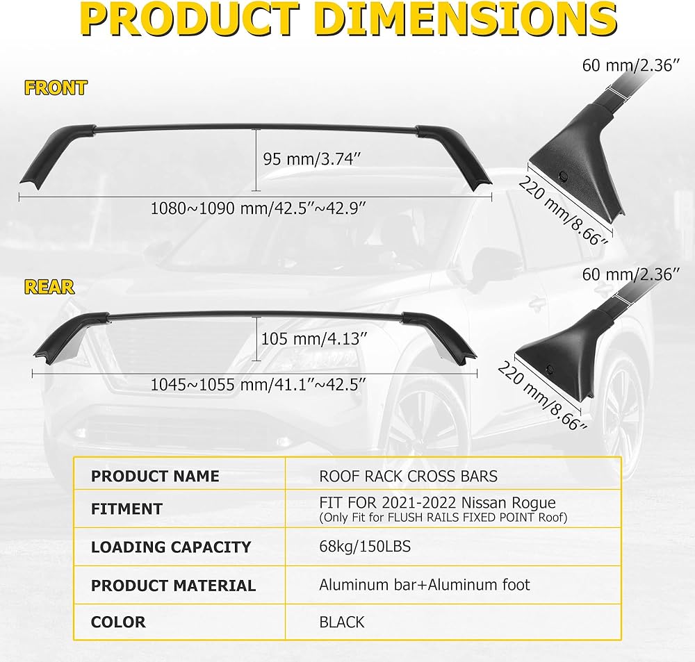 【التوافق: يناسب نيسان باثفايندر 2022 2023 2024 مع نقطة ثابتة للقضبان الجانبية المتدفقة. تأكد من أن سيارتك مجهزة بنقطة ثابتة لقضبان السقف الجانبية. يرجى التحقق من سنة وطراز سيارتك قبل الشراء.