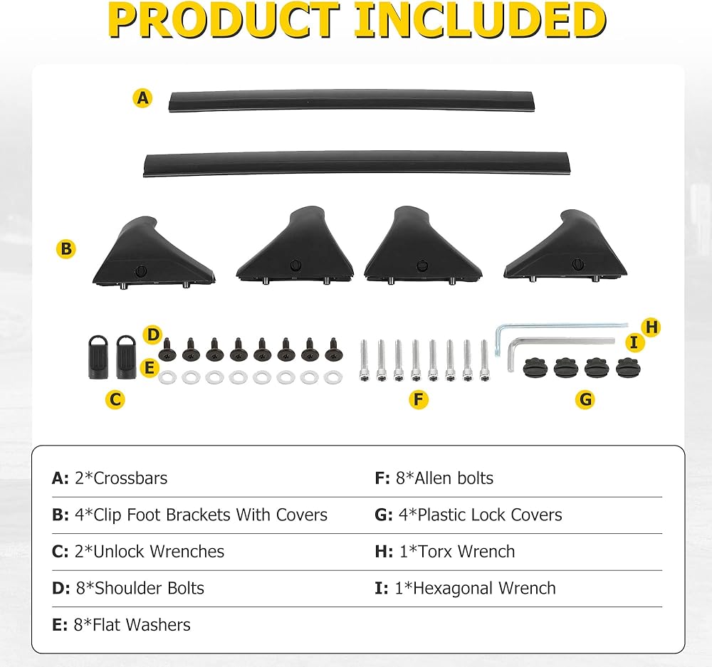 【تشمل العبوة】تتضمن العبوة رف سقف السيارة والتعليمات ومجموعة أدوات التثبيت الضرورية. إذا كان لديك أي قلق أو أسئلة، فلا تتردد في الاتصال بنا.