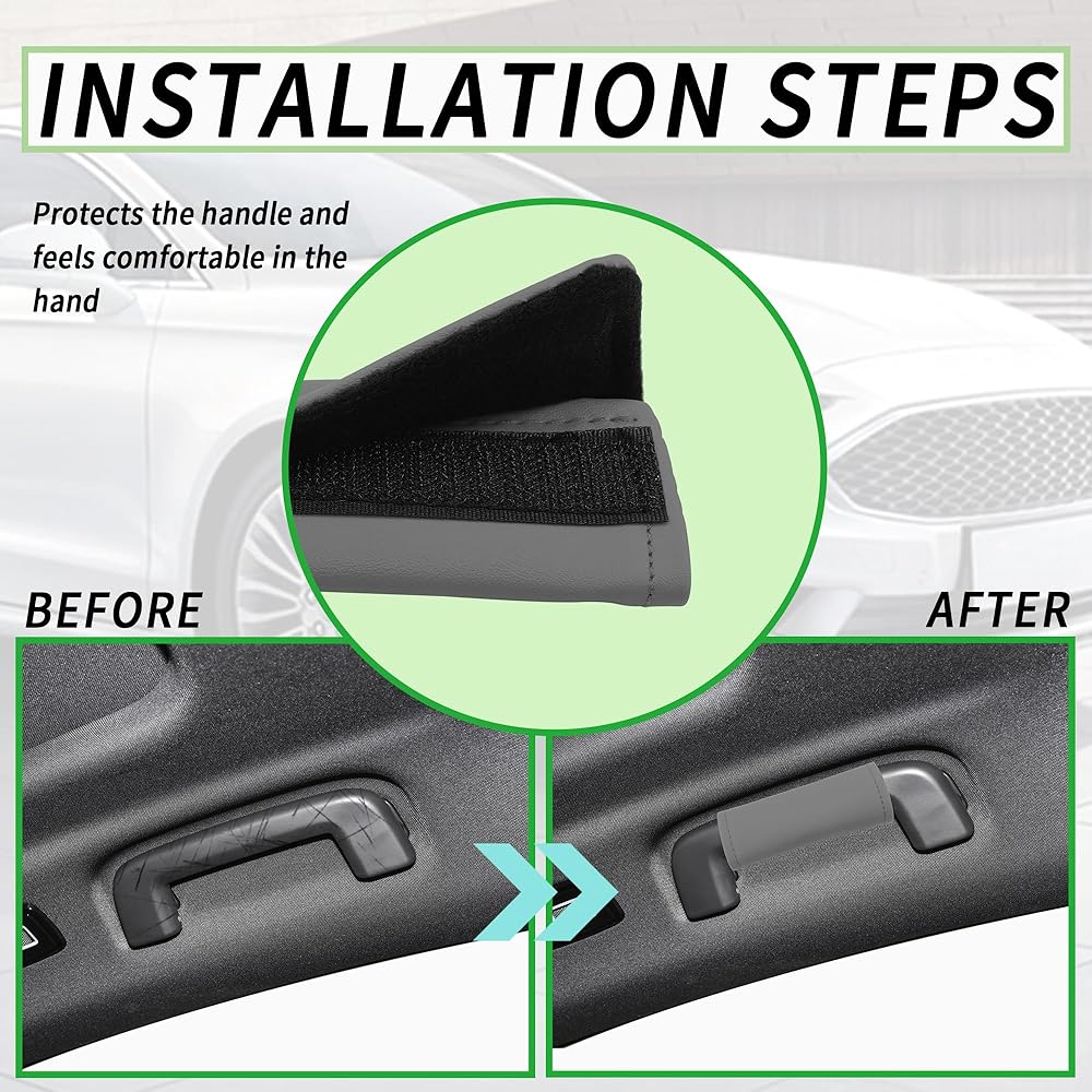 💙 مادة مختارة: واقي مقبض باب السيارة الخاص بنا مصنوع من مواد جلدية مختارة، مقاوم للتآكل ومقاوم لأشعة الشمس، ملمس رقيق، ناعم وصديق للبشرة. بطانة متدفقة، المادة لا تبهت، ولا تجهد يدك، وتحمي المقبض من البلى.