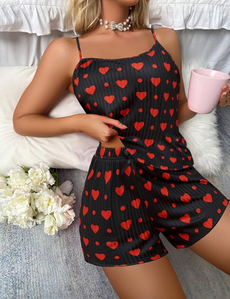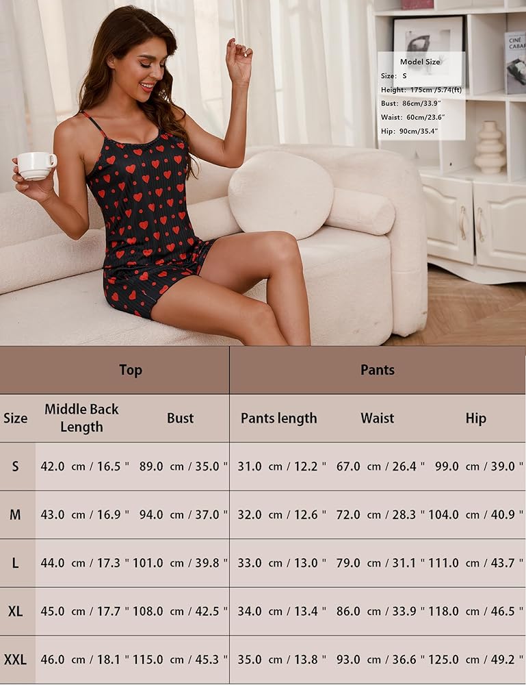 【ملاحظة】طقم بيجامة مثير للسيدات ذو تصميم عادي، وليس فضفاضًا، يرجى التحقق من جدول المقاسات قبل الطلب. محتوى العبوة: 1 × قميص بيجامة كامي 1 × شورت بيجامة بخصر مطاطي.