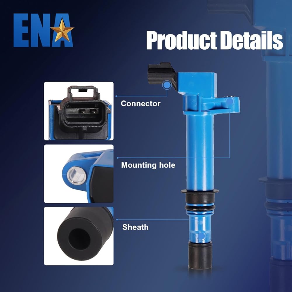 ENA Pack 6 ملف الإشعال قابس الإشعال متوافق مع دودج جيب ميتسوبيشي ليبرتي رام دورانجو داكوتا جراند شيروكي رايدر كوماندر نيترو 2002 2003 2004 2005 2006 2007 2008 3.7 V6 لـ UF270 4504 أزرق