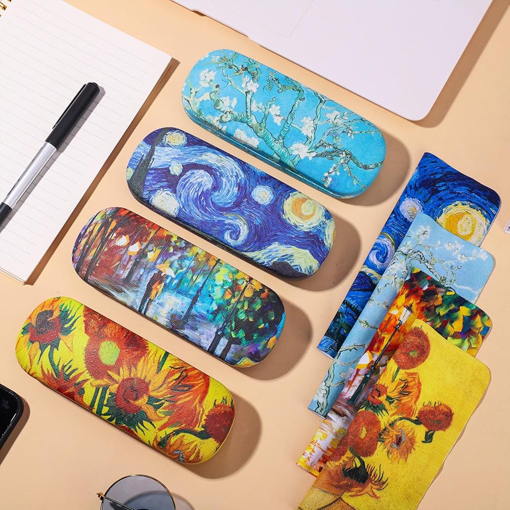 حزمة قيمة: سوف تحصل على 4 عبوات من حافظات النظارات الصلبة، وتأتي مع 4 قطع من قماش التنظيف بتصميم مختلف، مريحة لك لفرز النظارات ووضعها بشكل منظم.