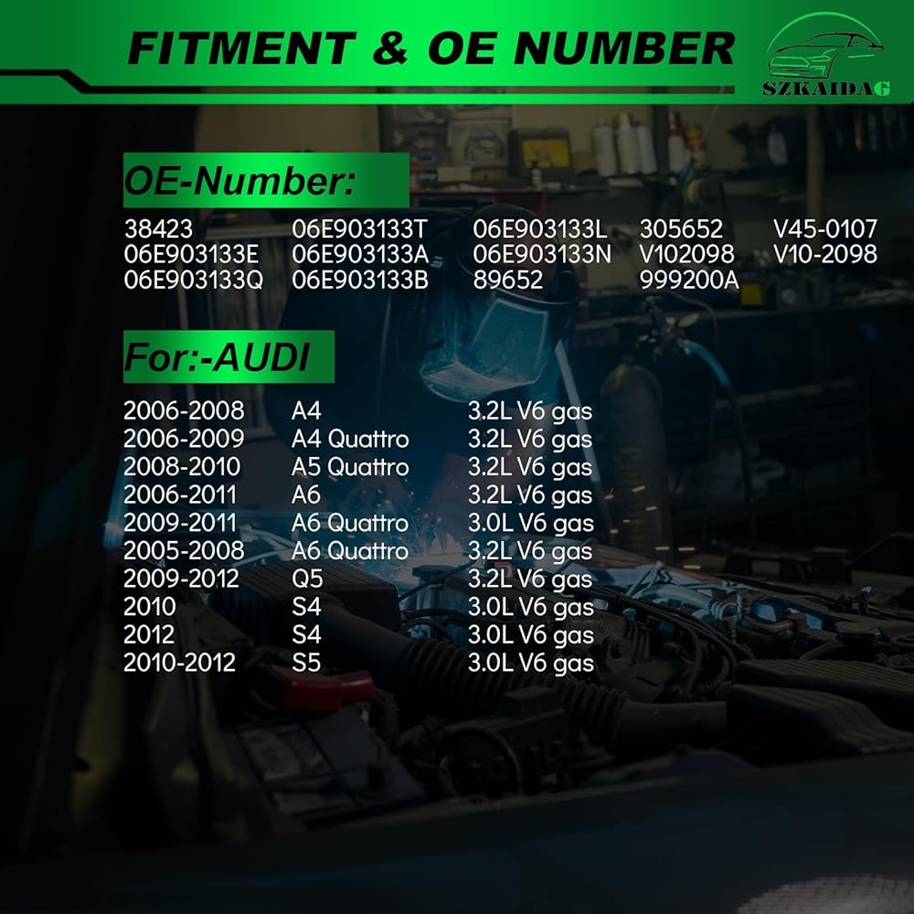 • تطبيق متوافق مع: -Audi A4 2006-2008 3.2L، A4 Quattro 2006-2009 3.2L، A5 Quattro 2008-2010 3.2L، A6 2006-2011 3.2L، A6 Quattro 2009-2011 3.0L، A6 Quattro 2005-2008 3.2L، Q5 2009-2012 3.2L، S4 2010-2012 3.0L، S5 2010-2012 3.0L
