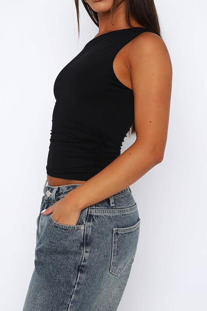 سترة علوية بدون أكمام مبطنة مزدوجة للسيدات أنيقة: أبرز منحنياتك مع القميص القصير المثير ذو خط العنق غير المتماثل مما يجعلك أكثر أنوثة. هذا القميص العلوي ذو القصة الخارجية يجب اقتناؤه لأزياء الصيف، وهو مثالي للارتداء مع السراويل الفضفاضة أو السراويل القصيرة أو الجينز أو التنورة أو سراويل اليوغا للحصول على مظهر Y2K.
