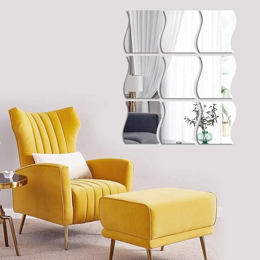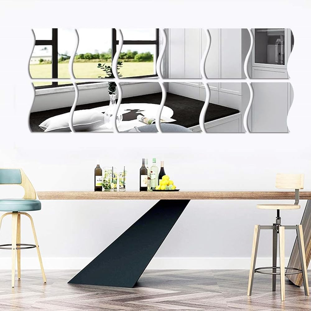 Mirror Stickers Wall Decor: This acrylic wall decor is as clear and reflective as class mirror, but not sharp and fragile without any damaging. You can use this wave mirror wall stickers as bathroom mirror, wall mirror to makeup, overall mix, mirror effect design makes your home looks different, more attractive!