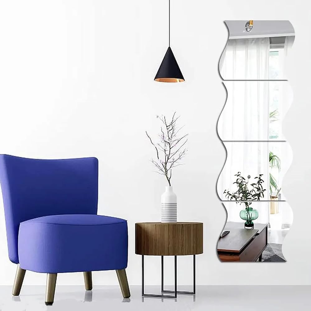 6 قطع من ملصقات الحائط على شكل مرآة من الأكريليك، مقاس 4.7 × 3.9 بوصة ذاتية اللصق، مرآة فنية قابلة للإزالة، مرآة على شكل موجات مرآة، ملصق جداري للحمام، ديكور جداري للحمام المنزلي