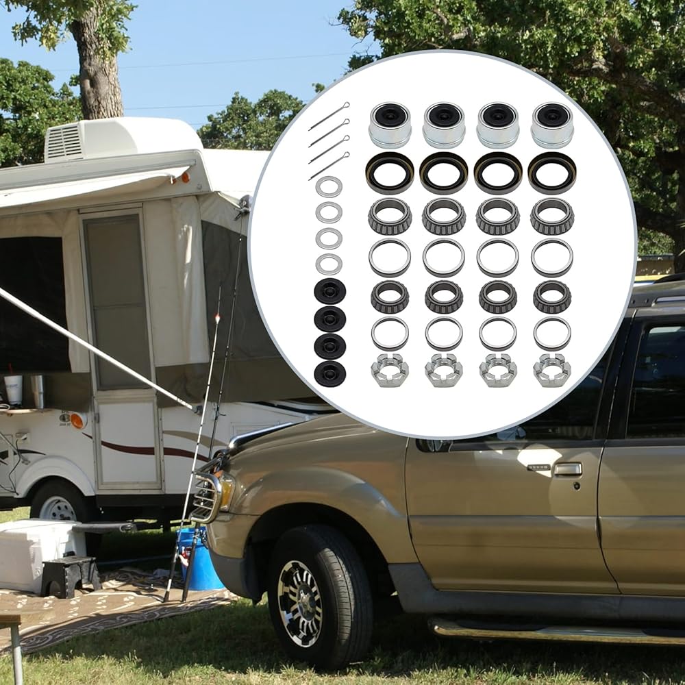 تتضمن الحزمة: حزمة واحدة للجميع، بما في ذلك 4 مجموعات من المحامل الداخلية والخارجية والسباق (L68149، L68111، L446494، L44610)، 4 أختام شحم، 4 صواميل قلعة، 4 غسالات، 4 دبابيس كوتر، تلبي احتياجاتك المتعددة. عند اختيار هذه المجموعة، قد تواجه صعوبة في الذهاب إلى المتجر المحلي والحصول على جميع ملحقات المقطورة التي تريدها مرة واحدة