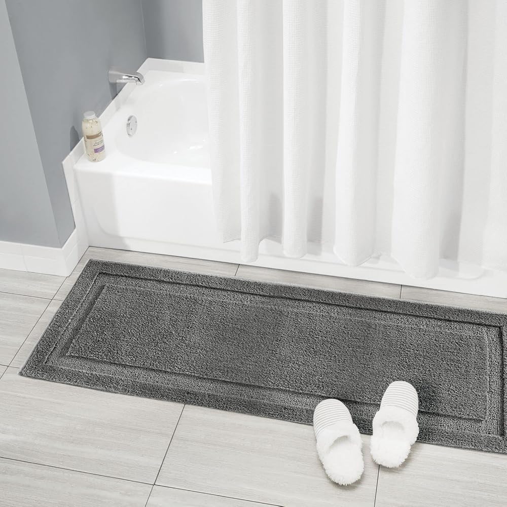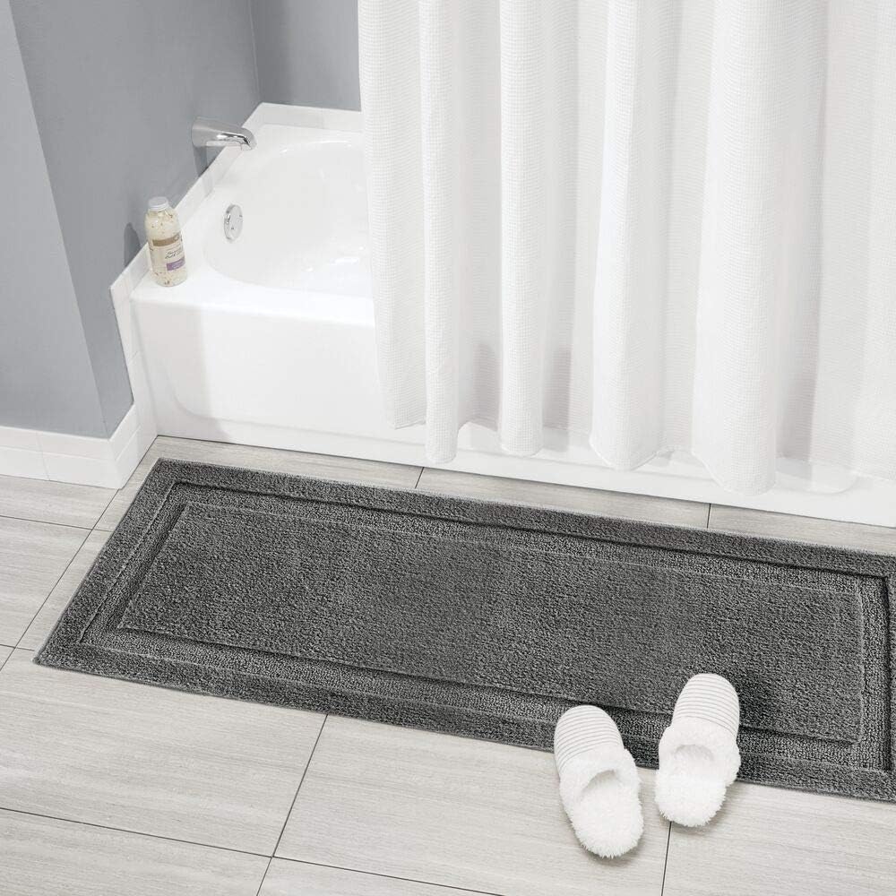 فائقة الامتصاص: تمتص الألياف الدقيقة الماء وتجف بسرعة؛ تحافظ الألياف سريعة الجفاف على مظهر هذه السجادة وملمسها الرائع، حتى مع الاستخدام المتكرر؛ تبقى الأرضيات جافة، لذا لا داعي للقلق بشأن أرضيات الحمام الزلقة؛ تعتبر السجادة الطويلة للغاية ذات الطراز العداء رائعة للاستخدام في الأحواض المزدوجة، أمام أحواض المياه، وفي الممرات والمداخل؛ مثالي لحمام الضيوف وغرفة البودرة والحمامات الرئيسية وحمام الأطفال والمزيد